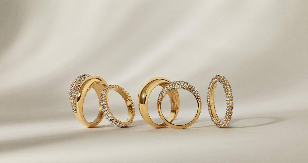 Embellished rings in the colors gold and silver. A combination of classic elegance and expressive details.