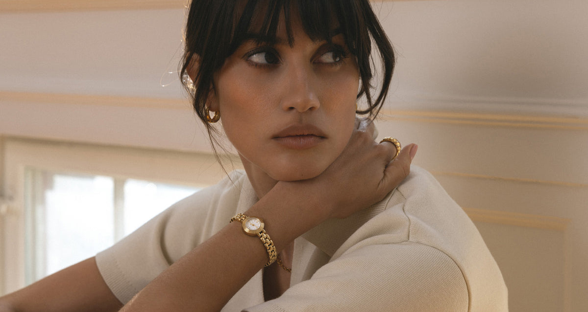 Small watches in elegant, discreet designs. Available in the colors silver, gold, and bic, with dials in black and white.