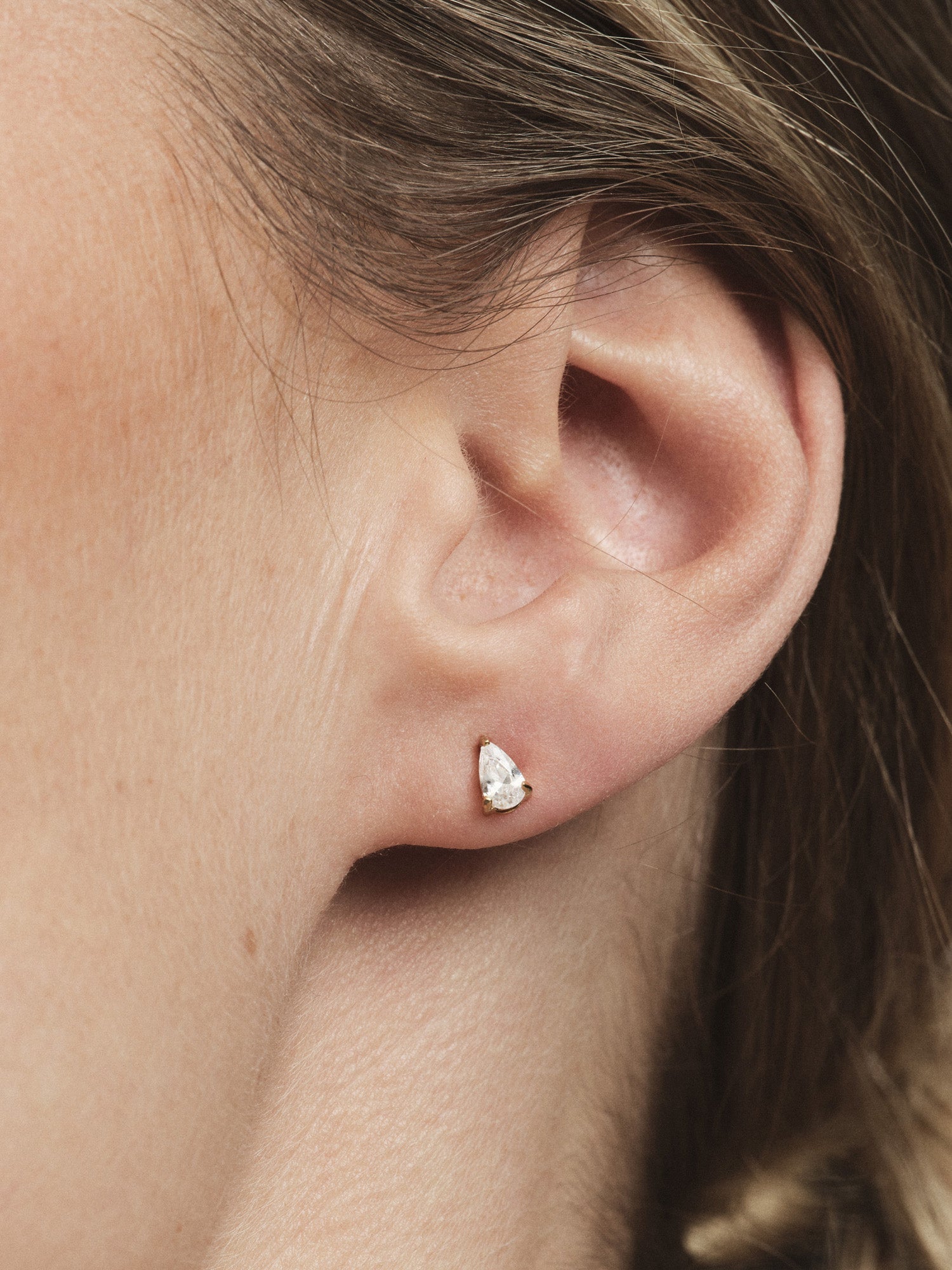 Timeless elegance in a minimalist design. Belle White Studs are discreet, sparkling earrings with white teardrop-shaped stones. Crafted from stainless steel with 18K gold PVD plating, they are durable and water-resistant, ensuring they retain their color and style over time.