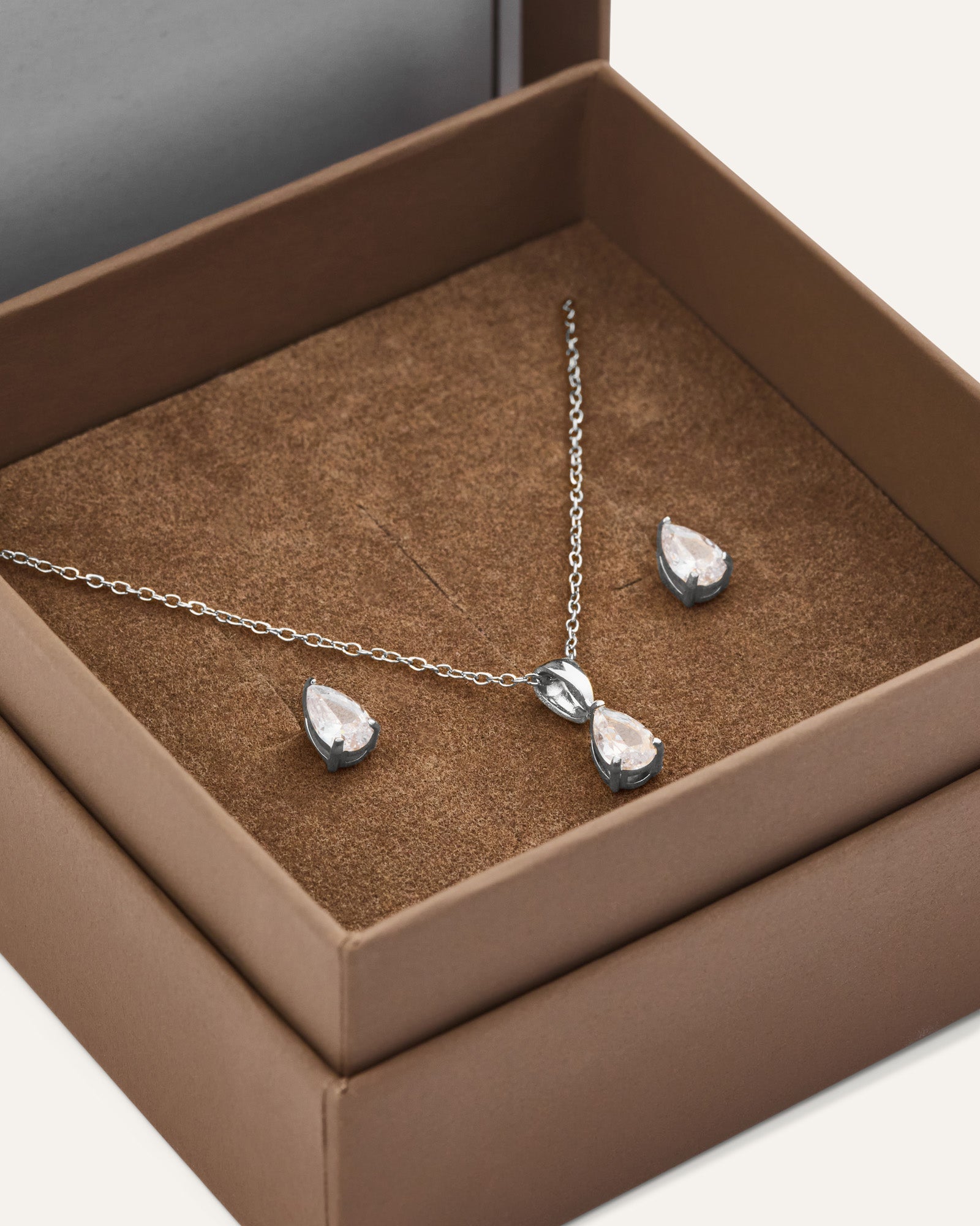 A sleek set with a necklace and our best-selling earrings. Designed to create a timeless, classic look. The perfect gift for someone you hold dear – or for yourself.