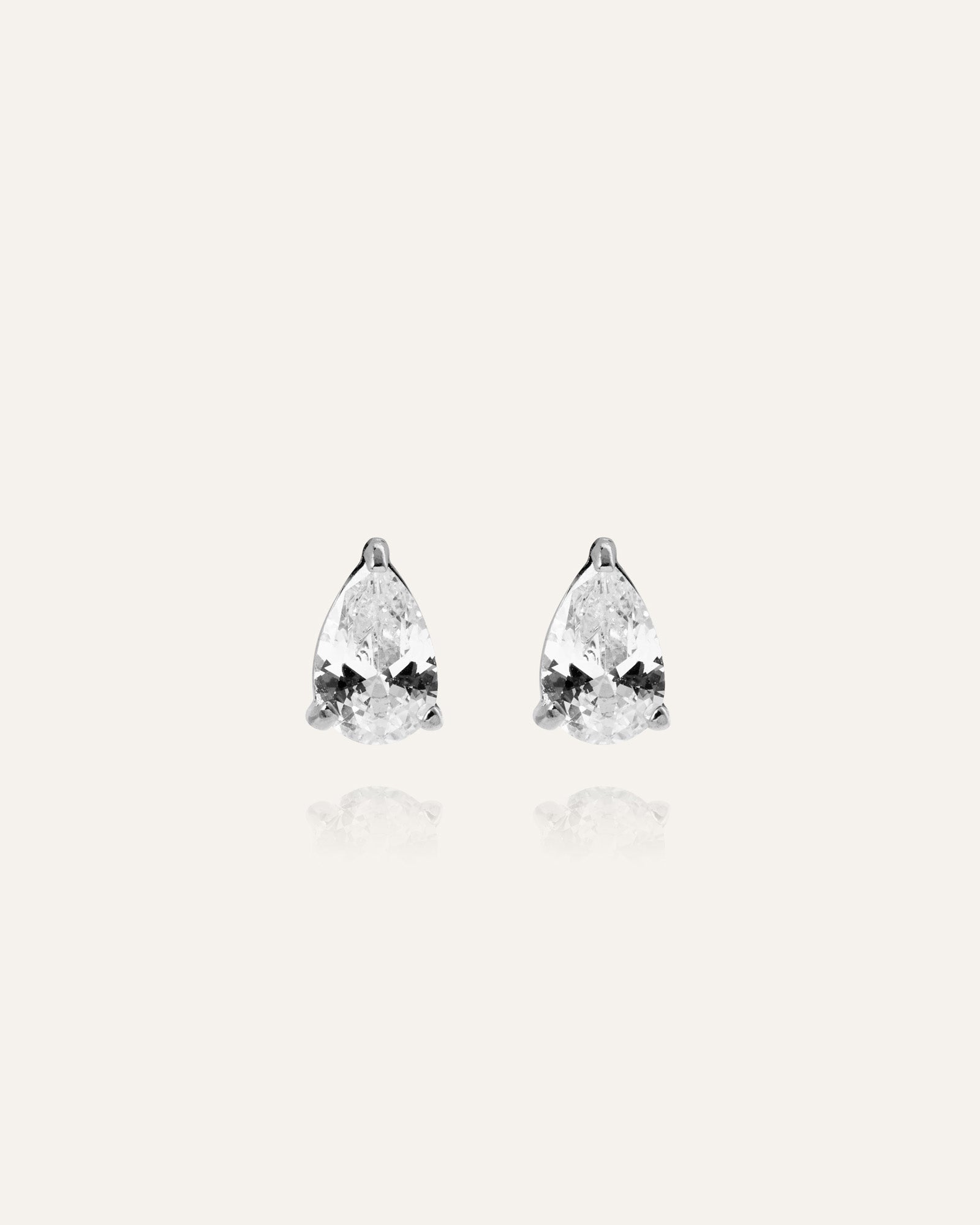 Timeless elegance in a minimalist design. Belle White Studs are discreet, sparkling earrings with white teardrop-shaped stones. Crafted from solid stainless steel, they are durable and water-resistant, ensuring they retain their color and style over time.