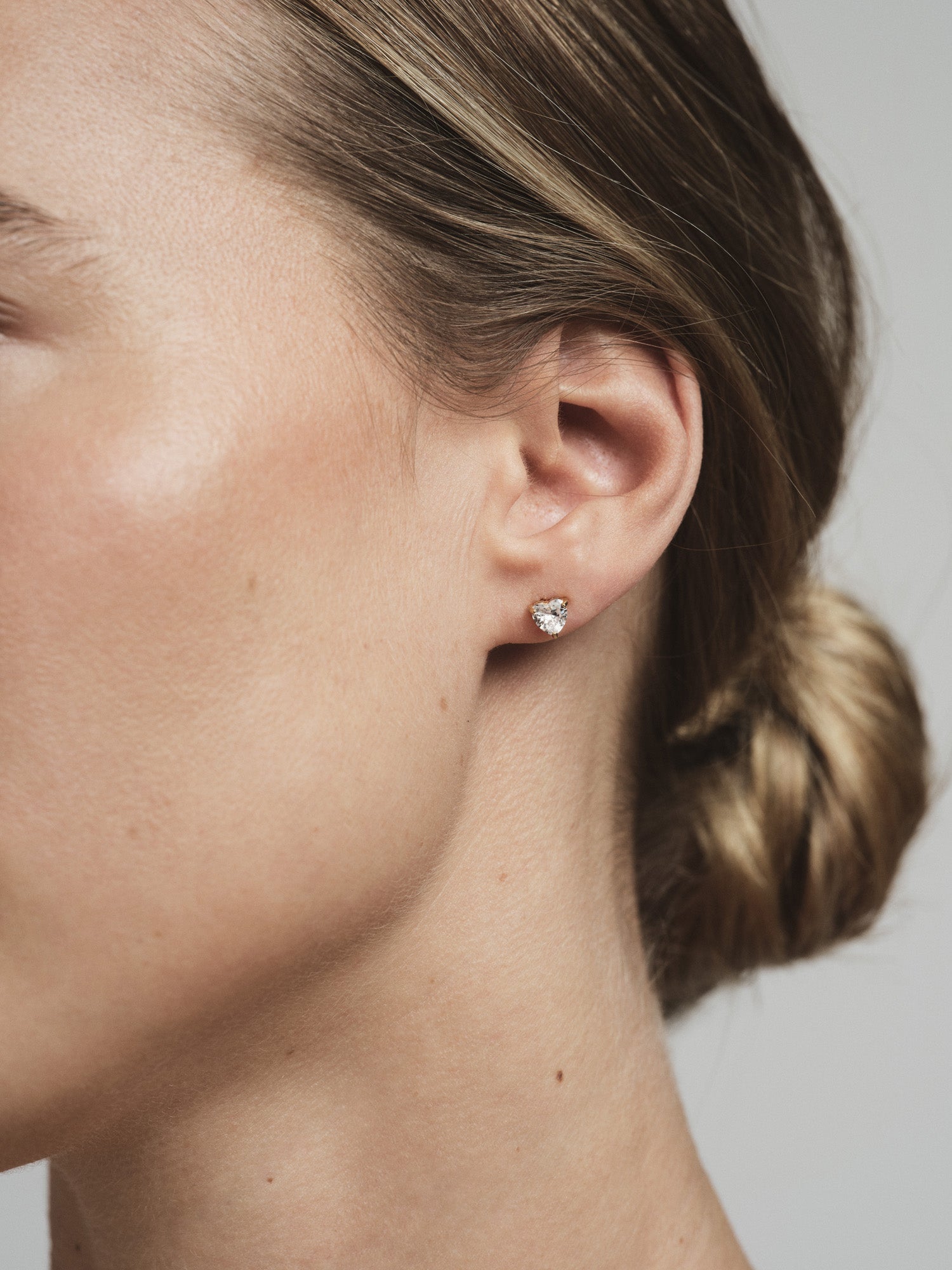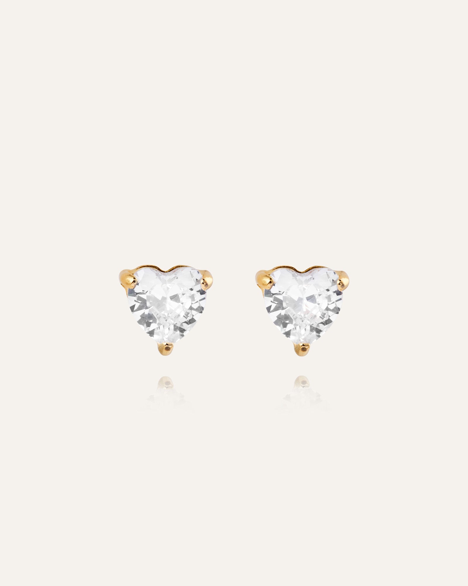 Timeless elegance in a minimalist design. Bonne White Studs are discreet, sparkling earrings with white heart-shaped stones. Crafted from stainless steel with 18K gold PVD plating, they are both durable and water-resistant, ensuring they retain their color and shine over time.