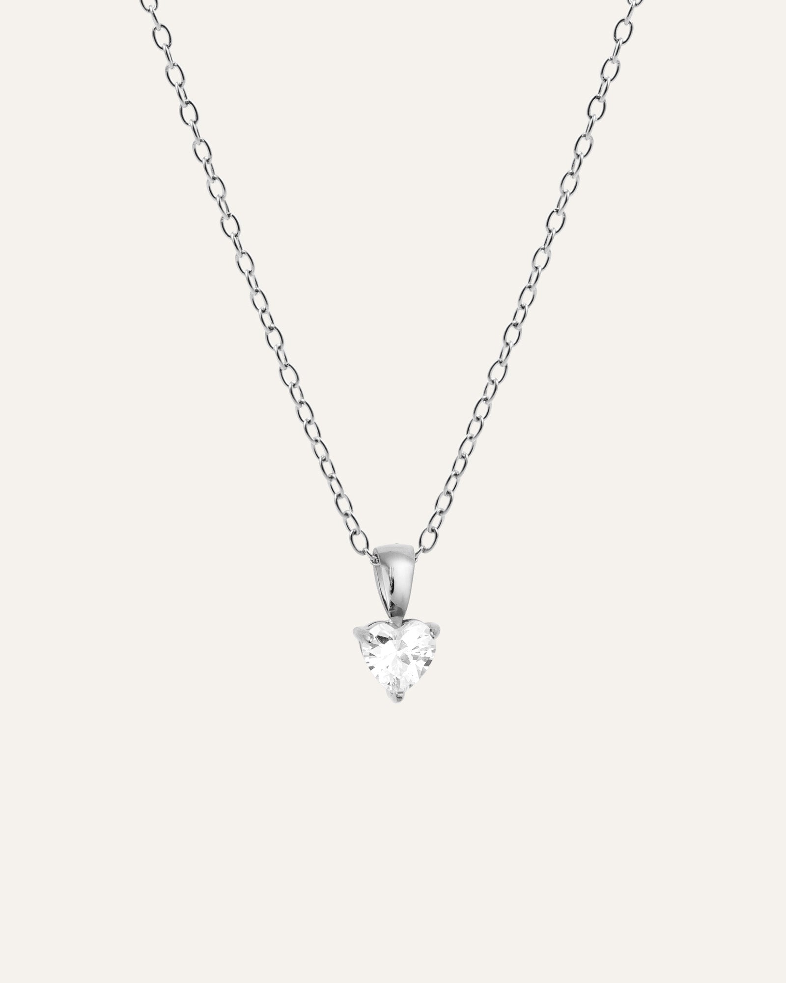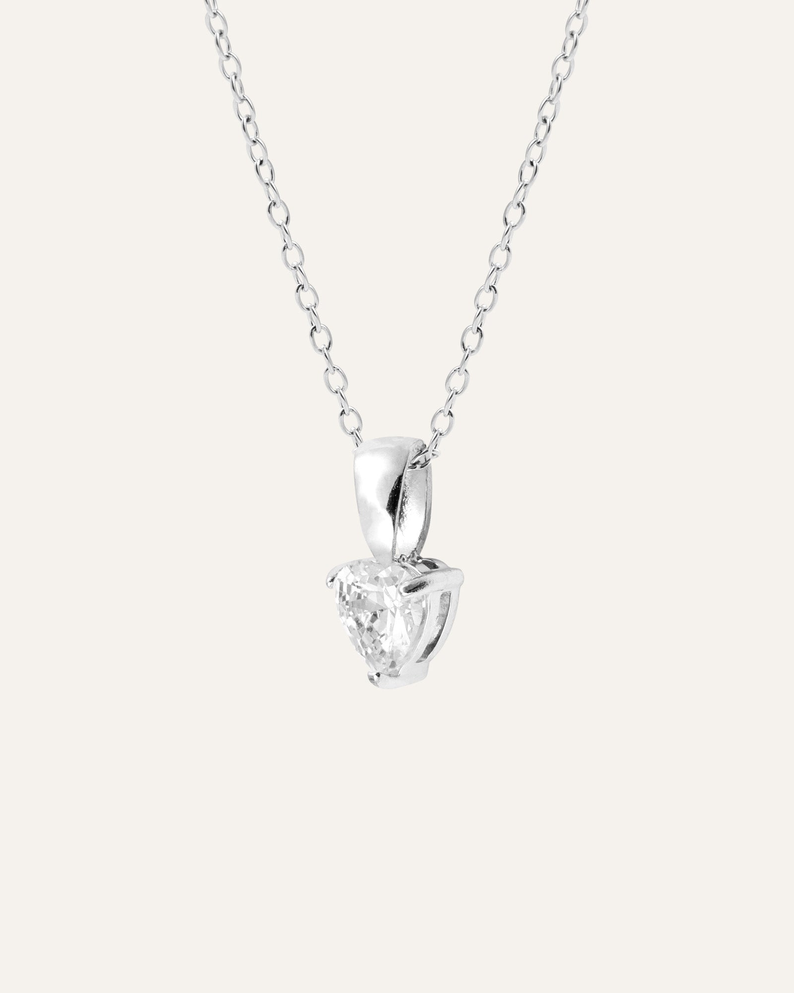 Bonne White Necklace features a heart-shaped white stone attached to a thin chain. Made from stainless steel with PVD plating, it is both durable and water-resistant, ensuring it retains its color and shine over time.