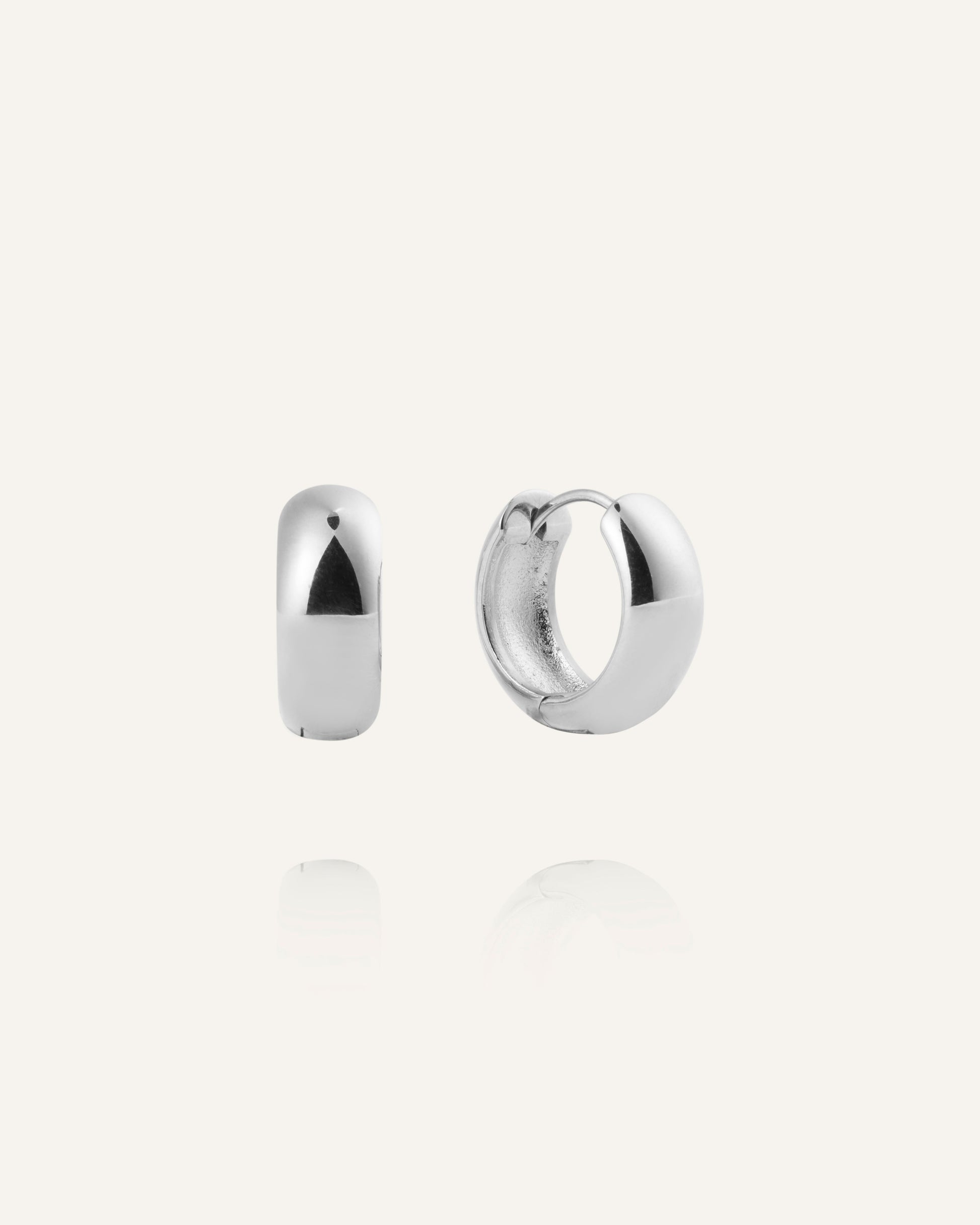 Brave Hoops feature a softly domed, compact design that sits close to the ear. Made from stainless steel with a silver-tone finish, they deliver a clean look that works from day to night. The polished surface offers a bright shine and stands up to everyday wear. Wear them solo for a pared-back look or pair with smaller studs for a personal touch.