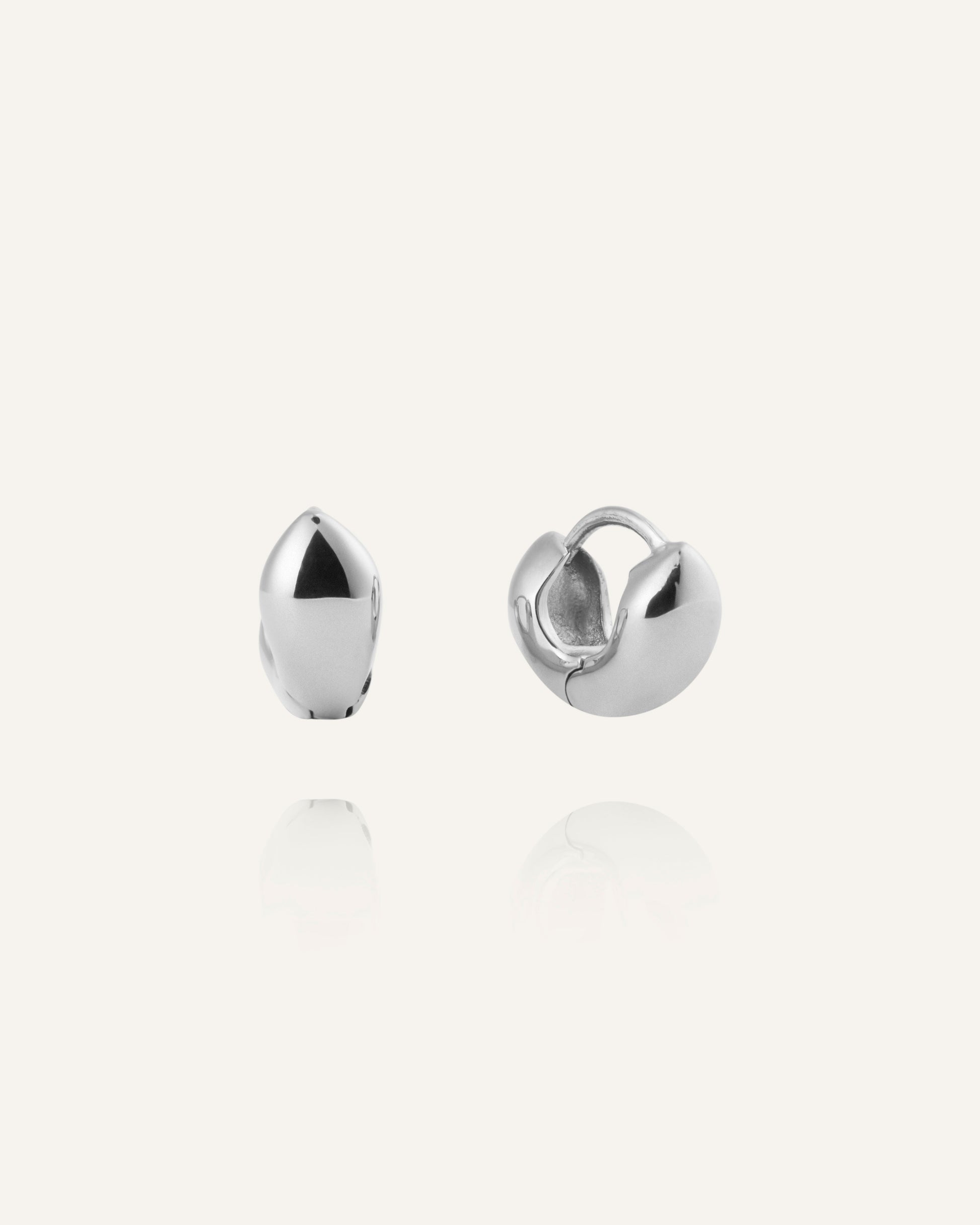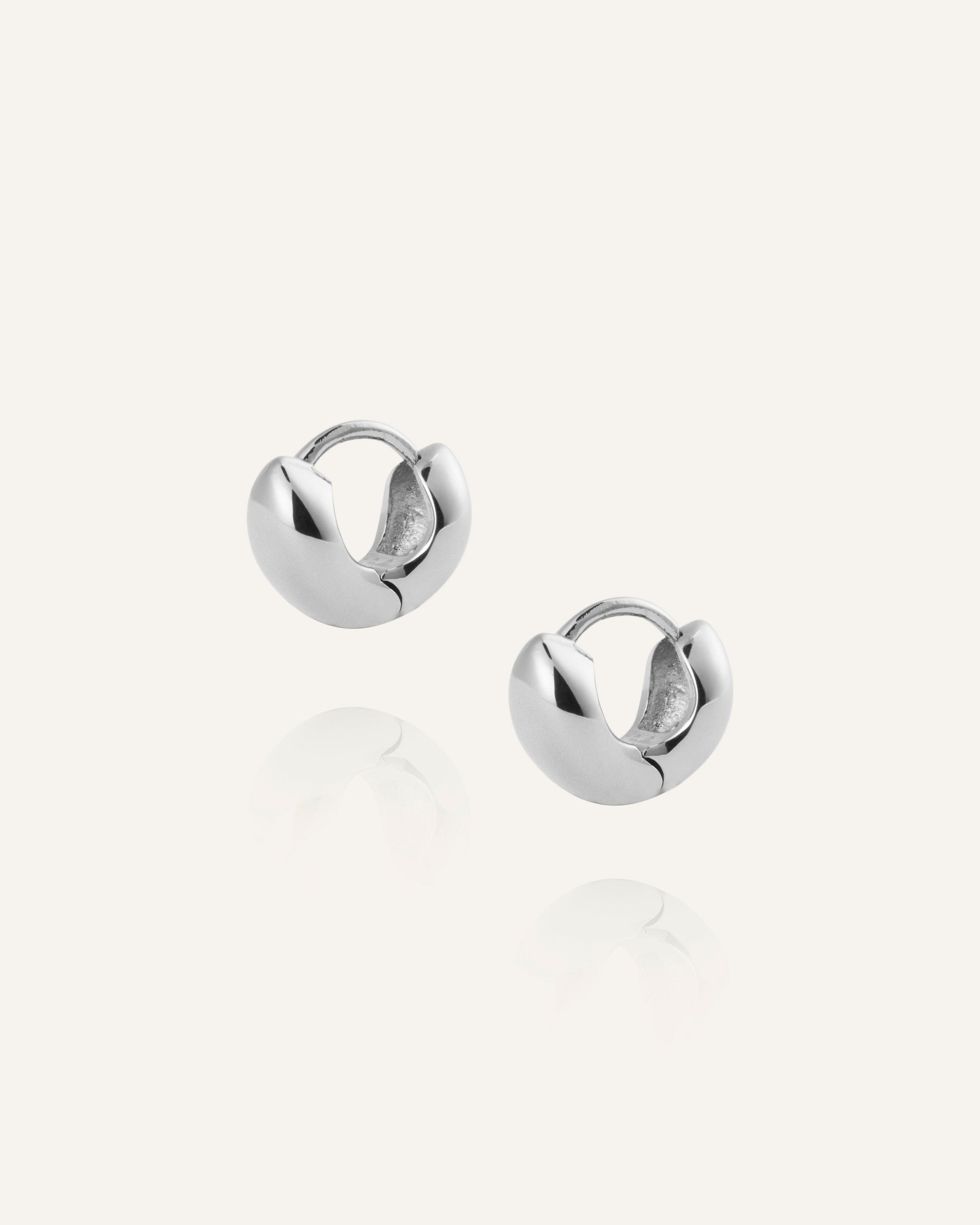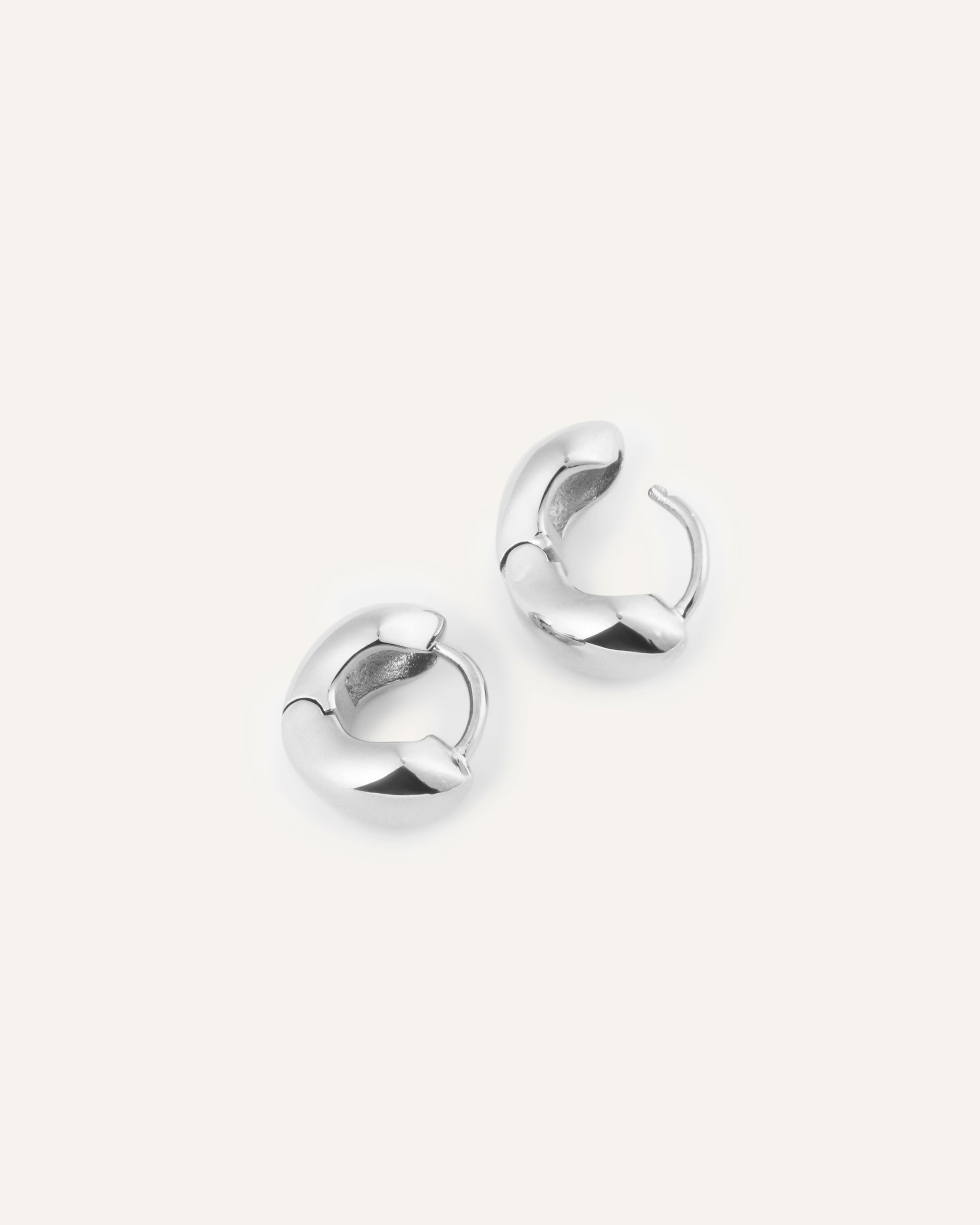 Bulky Huggies in a silver tone feature a polished, domed shape that gives a clean, refined shine. The compact size creates a modern look that works just as well with simple basics as with dressed-up outfits. Perfect worn solo or paired with other earrings.