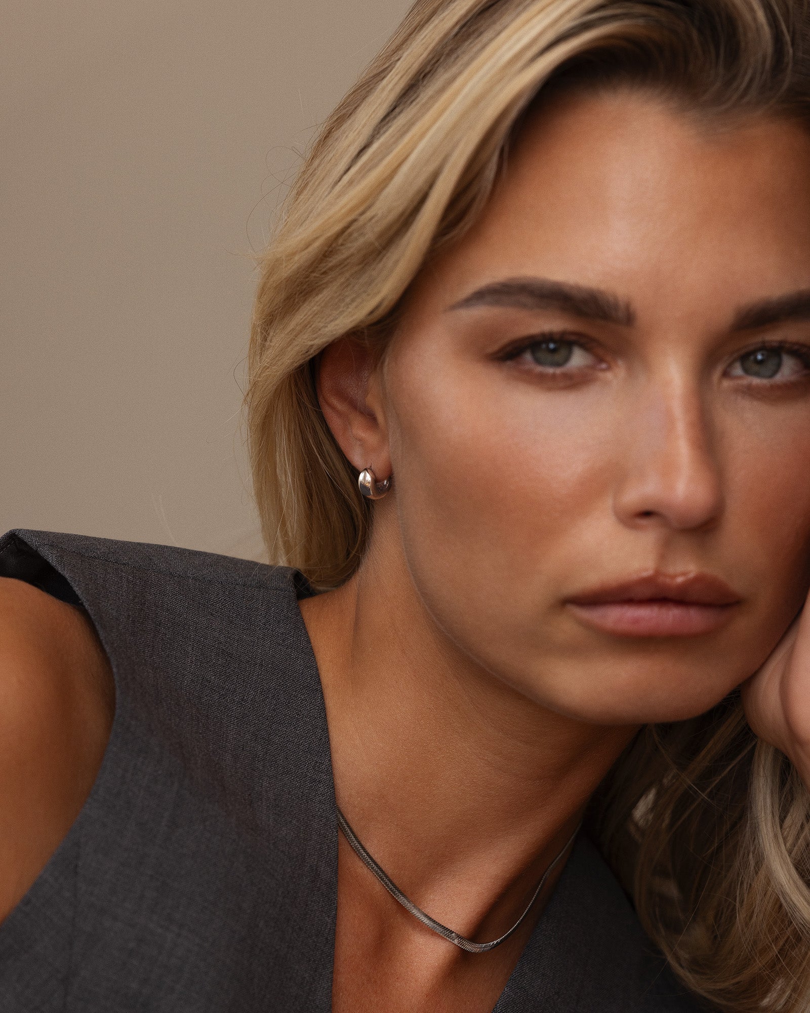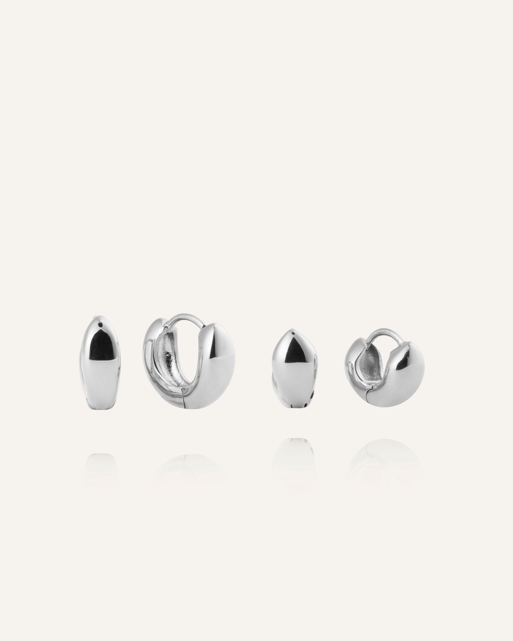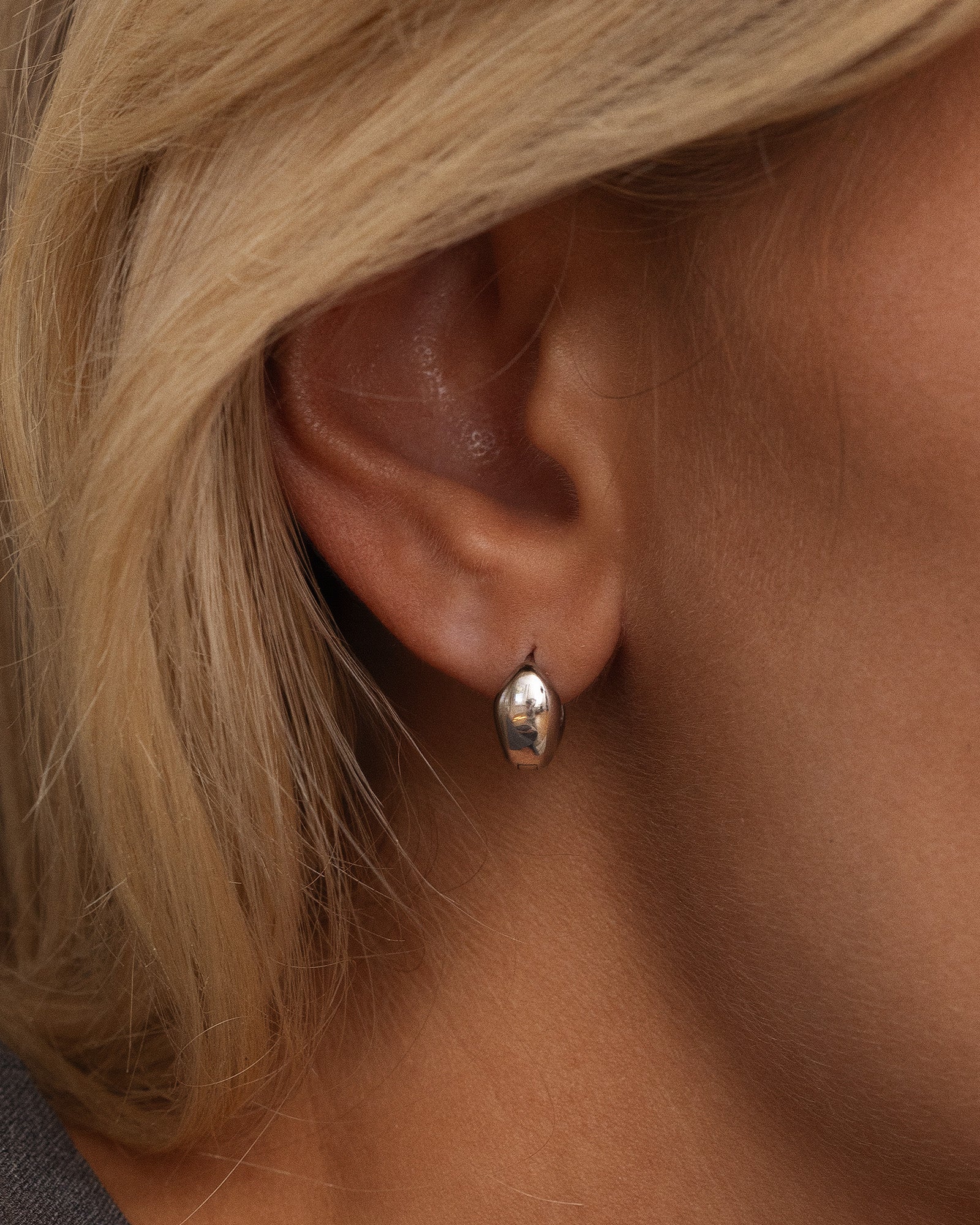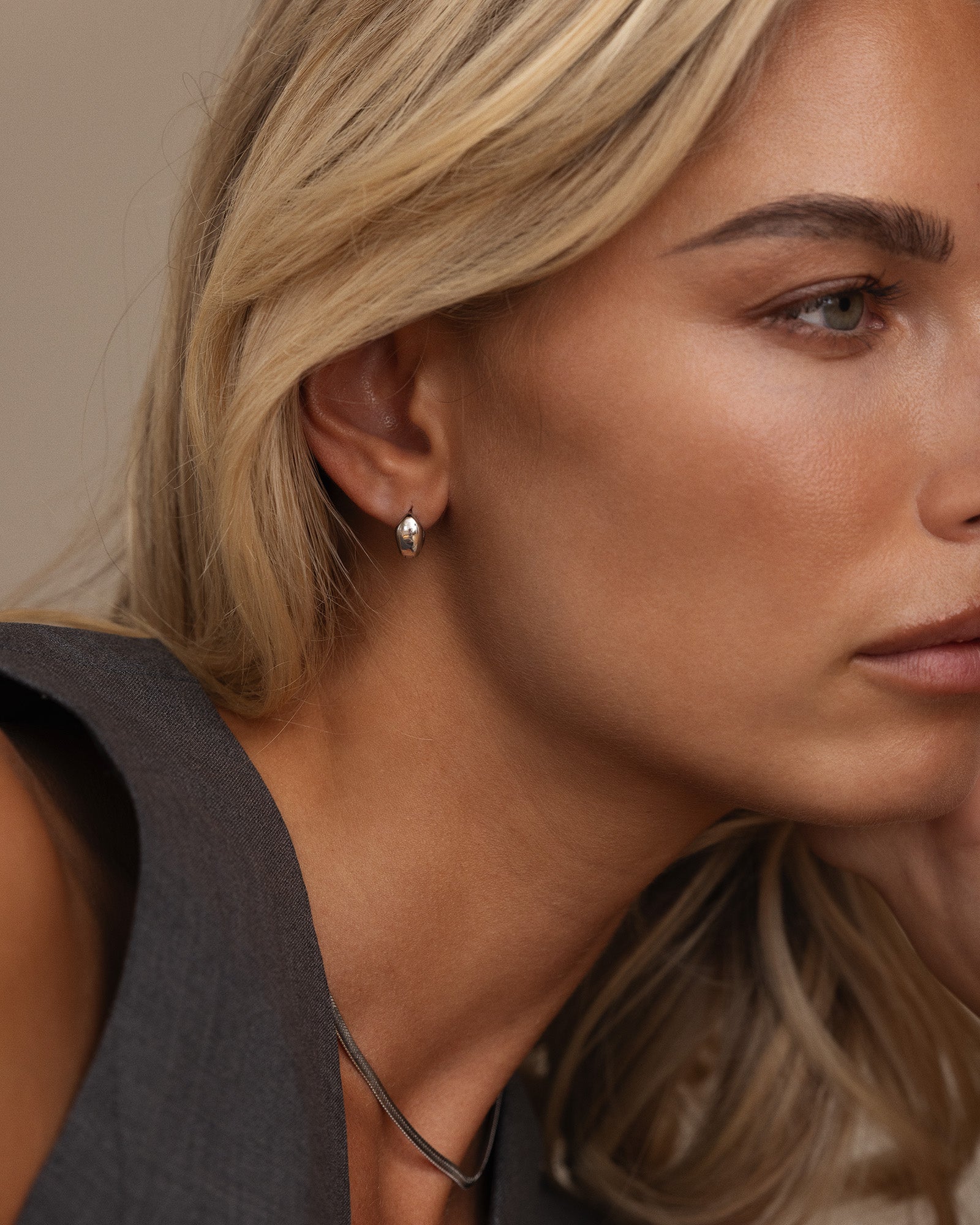 Bulky Huggies in a silver tone feature a polished, domed shape that gives a clean, refined shine. The compact size creates a modern look that works just as well with simple basics as with dressed-up outfits. Perfect worn solo or paired with other earrings.