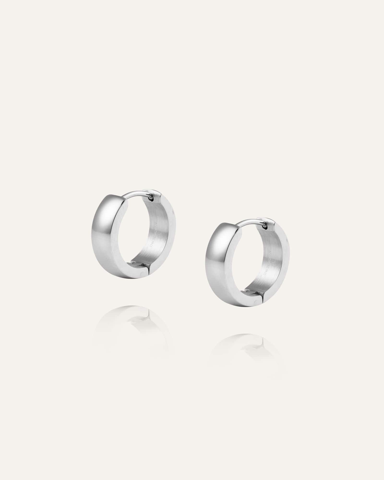 Classic hoop earrings crafted from solid stainless steel. Durable and water-resistant, so you can swim and work out without worrying about them losing their color.