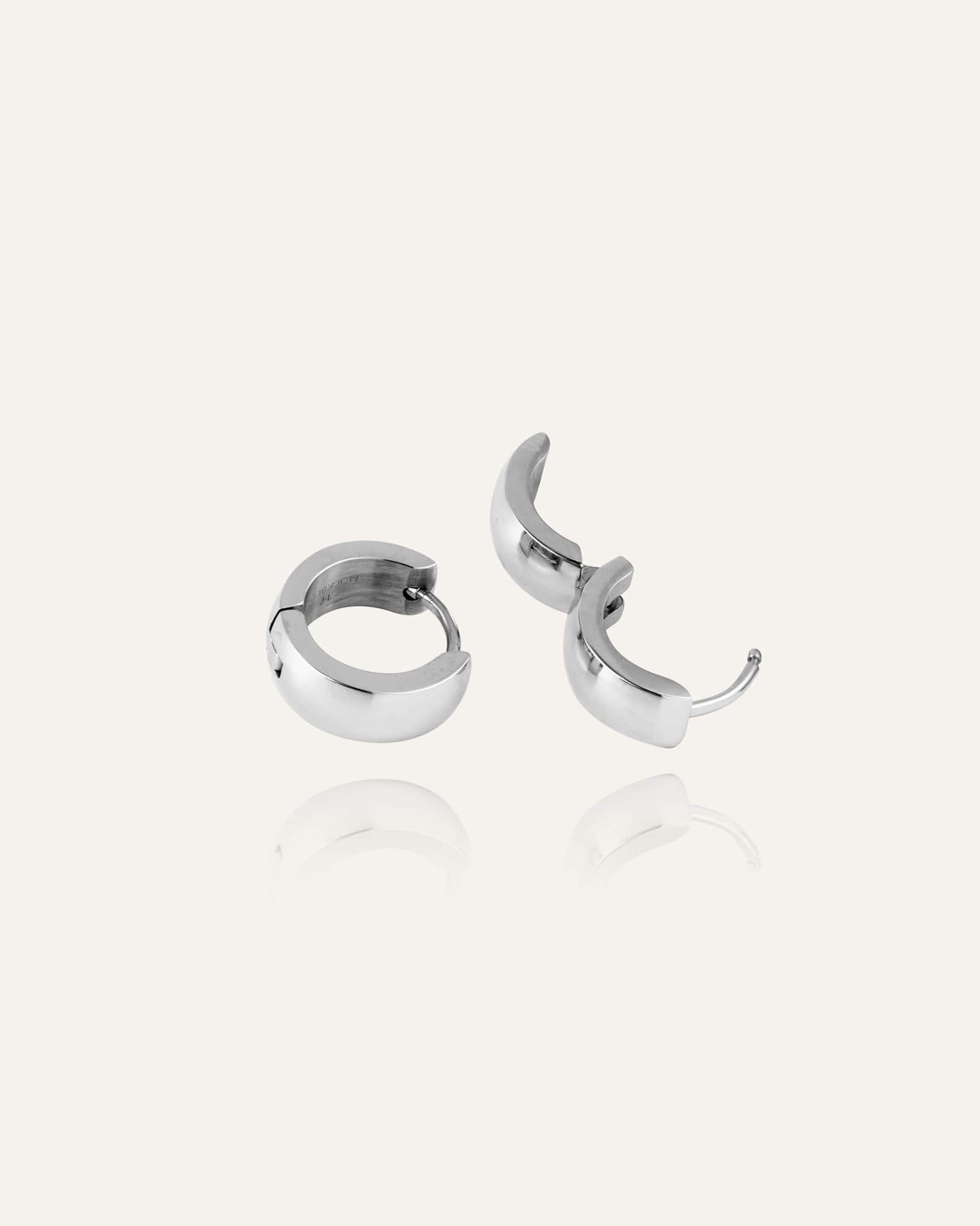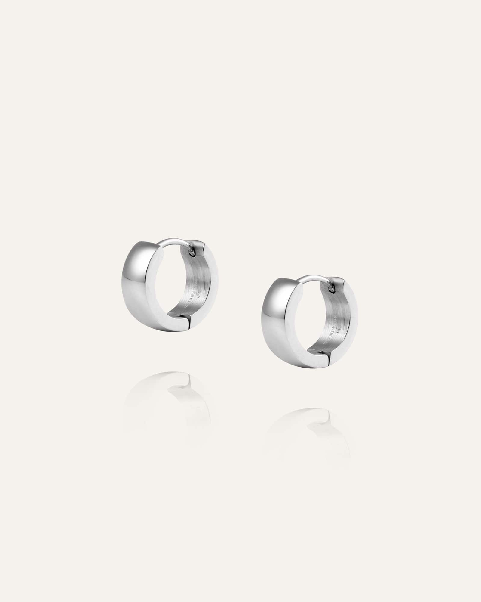 Classic hoop earrings crafted from solid stainless steel. Durable and water-resistant, so you can swim and work out without worrying about them losing their color.