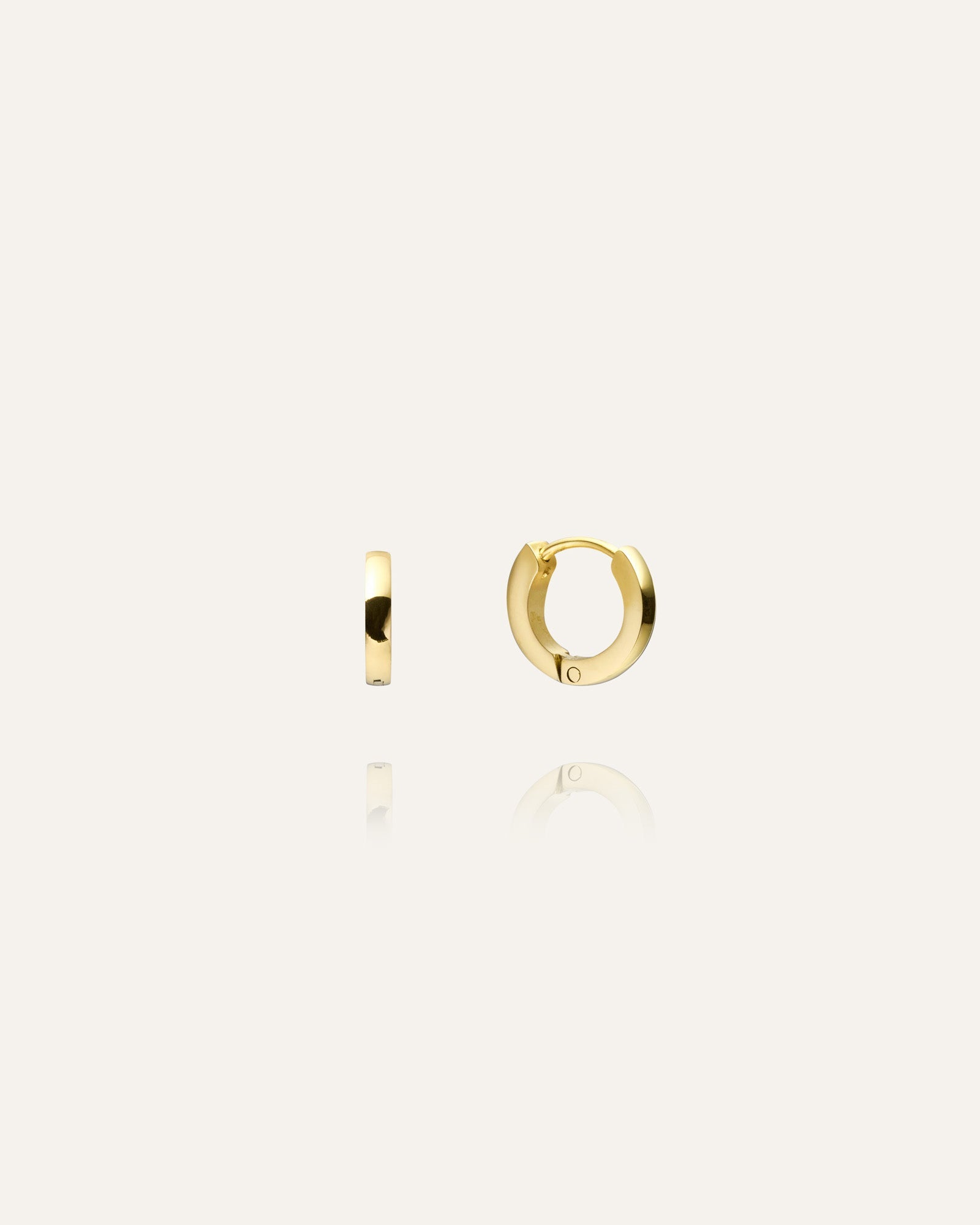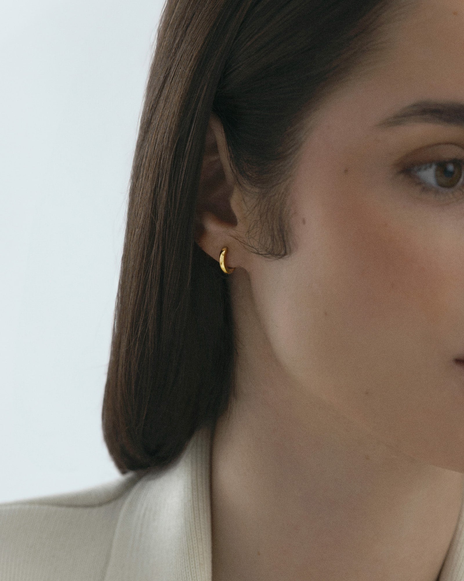 Classic hoops with a click-lock, crafted from solid stainless steel with 18K gold PVD plating. Durable and water-resistant, these earrings retain their color and elegance over time. Perfect to pair with our Shiny Hoops.