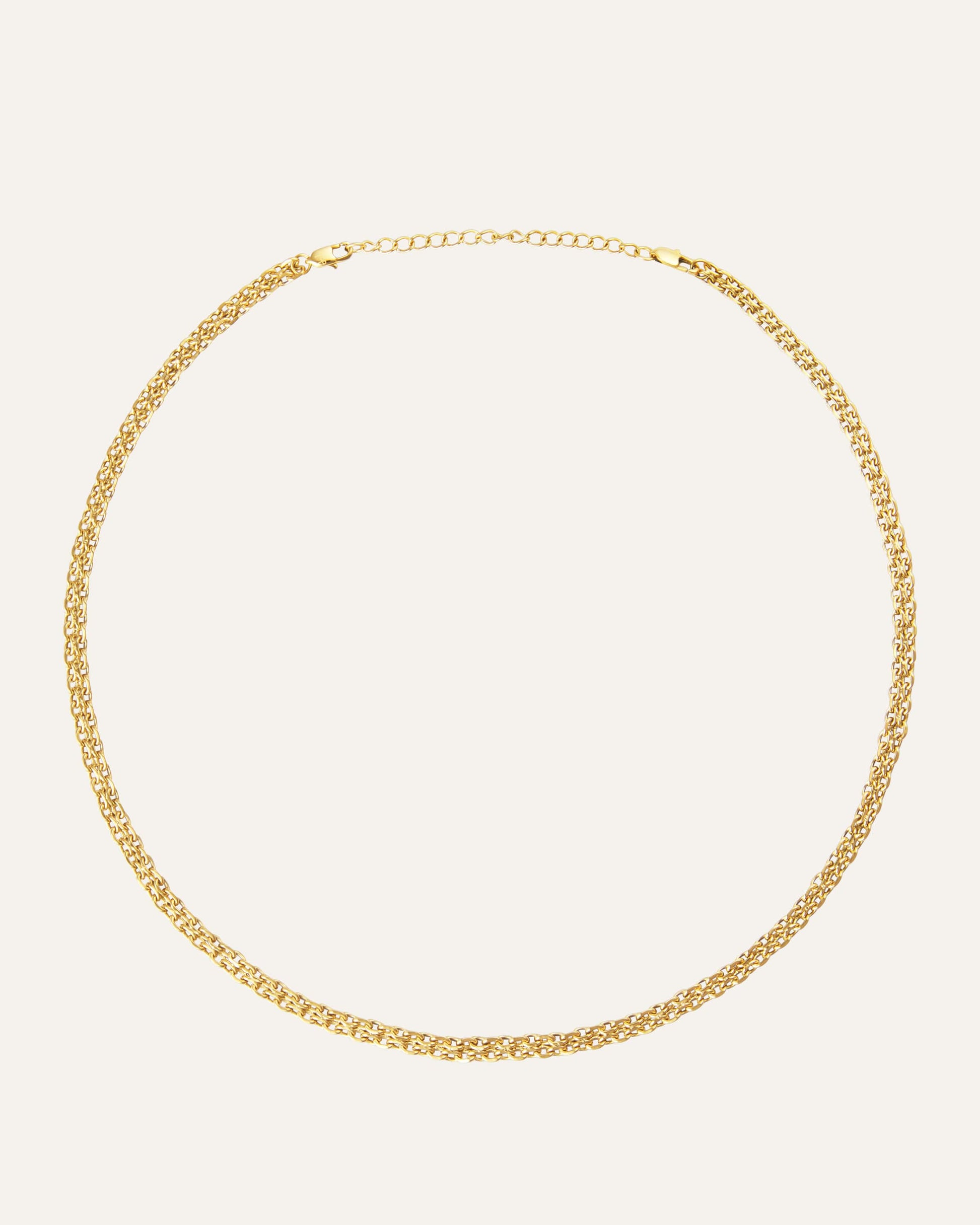 Darling Necklace has a sleek design with a classic chain that pairs perfectly with the Darling Bracelet for a complete style. Made from solid stainless steel with 18K gold PVD plating, it is both durable and water-resistant, ensuring it retains its color and shine over time. The extension chain can easily be removed for a more customized fit.