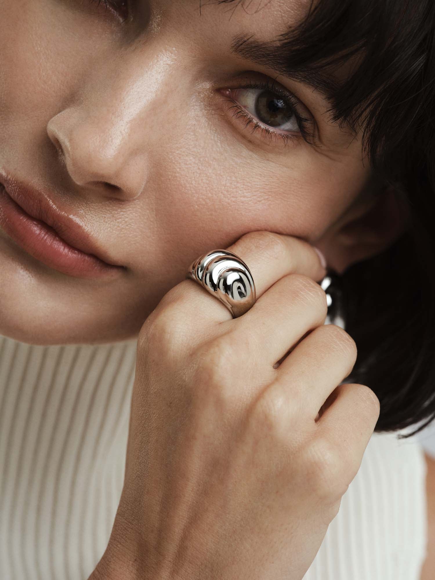 Deco Bold Ring has a sculpted and wave-shaped surface that gives a dynamic expression. Made from solid stainless steel with durable PVD plating, it is water-resistant and durable. Wear it every day – swim, shower, and work out without worrying about it losing its color.