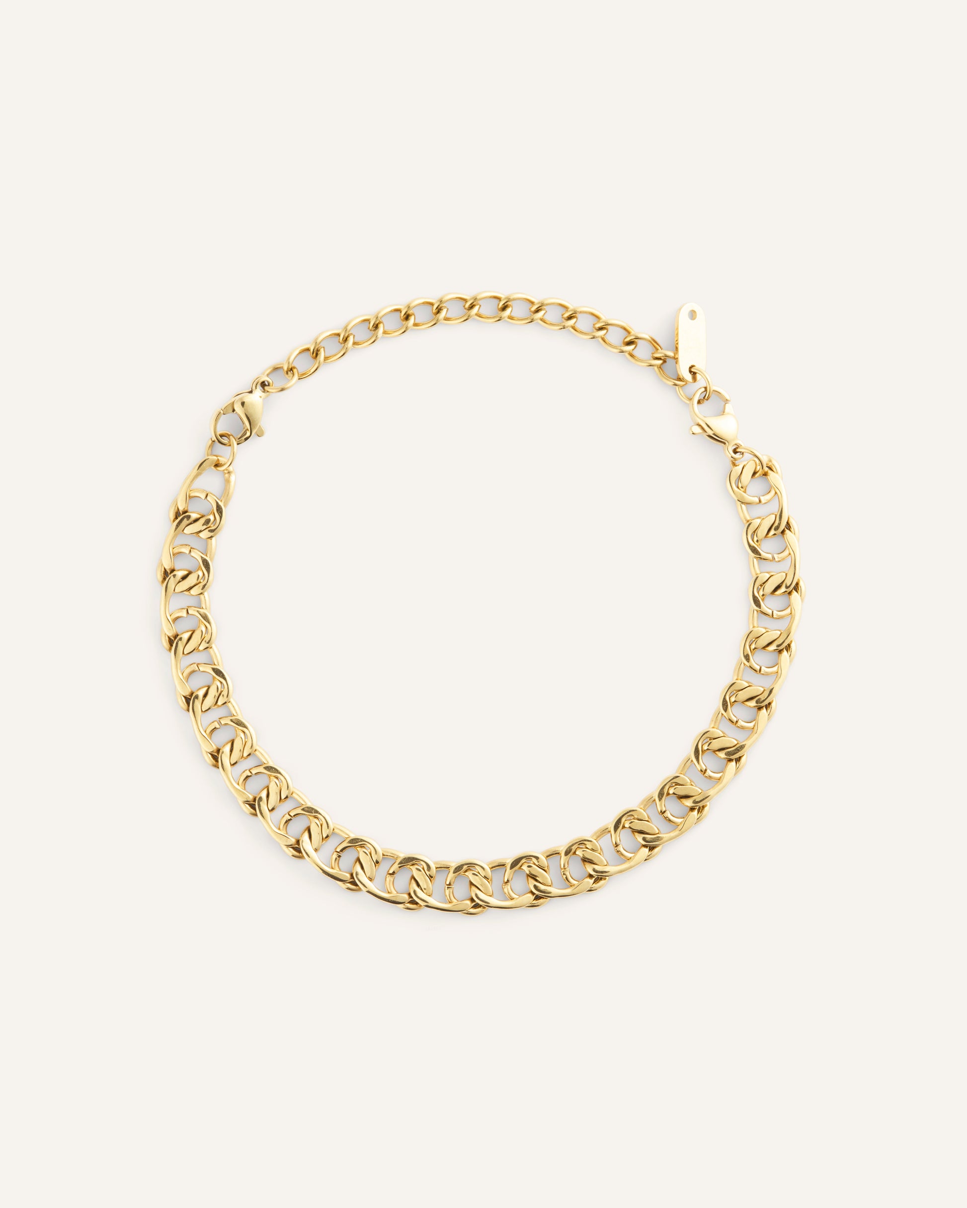 Infinity Bracelet is a classic chain with flat-lying links for a sleek, comfortable fit. Wear it solo or pair it with a watch and other bracelets. Crafted from stainless steel with 18K gold PVD plating—durable and water-resistant so its color and shine last over time. The extension chain can be removed for a customized fit.