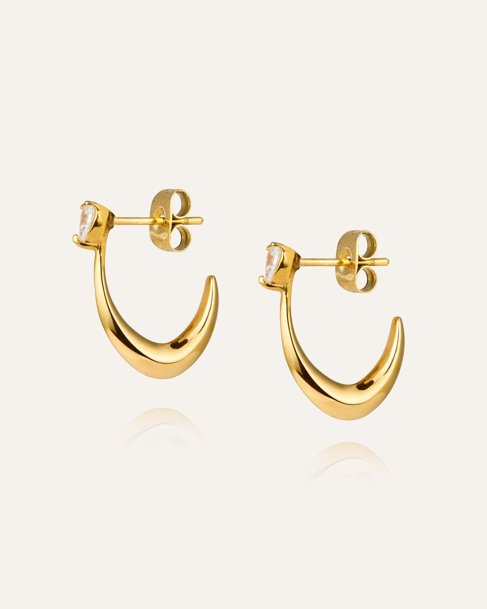 Timeless Scandinavian elegance in 18K gold‑plated stainless steel. A bright white cubic zirconia shimmers close to the ear, and the water‑resistant finish keeps its glow through rain, showers and swims.