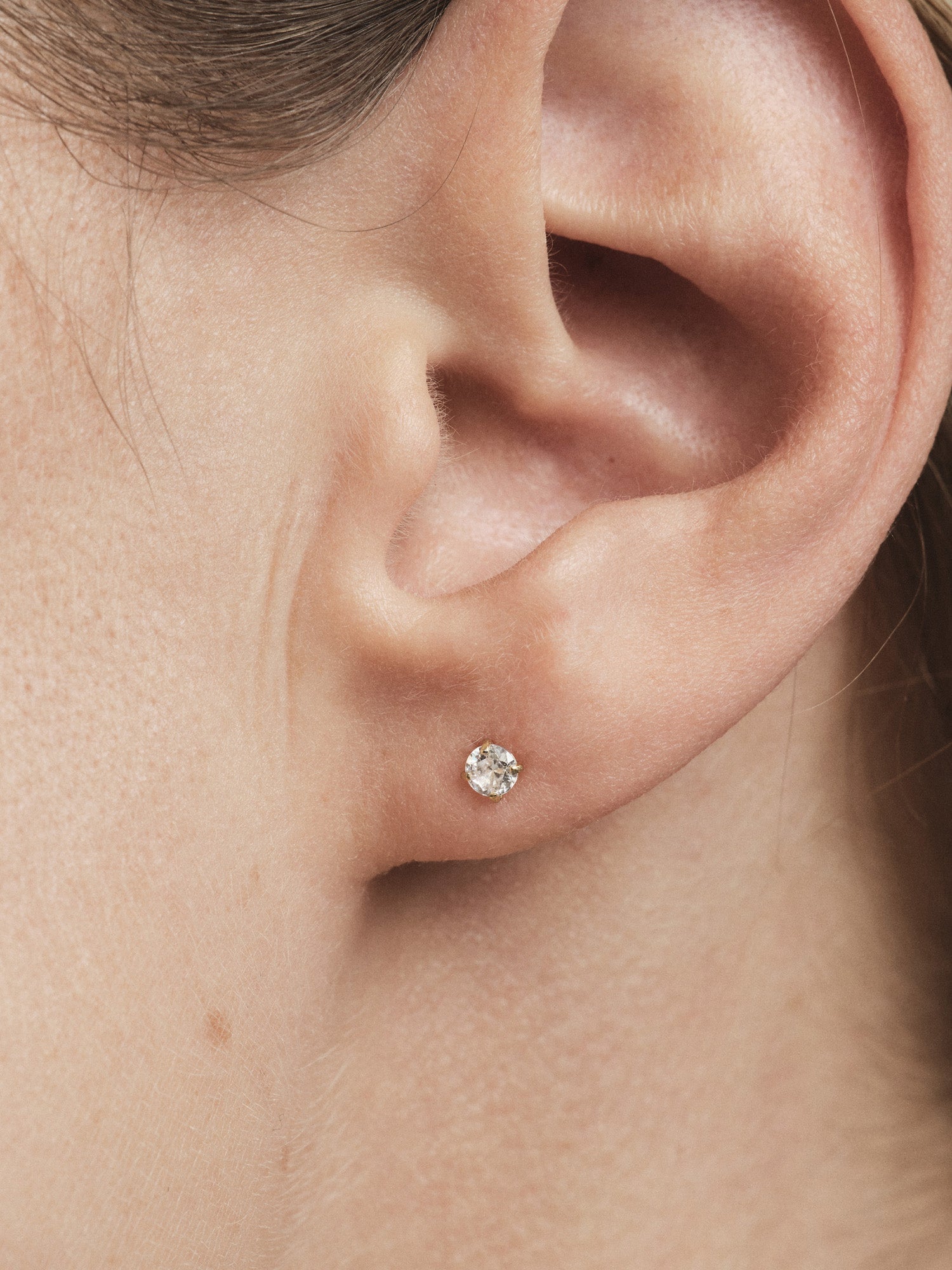 Timeless elegance in a minimalist design. Jolie White Studs are discreet, sparkling earrings with white cubic zirconia stones. Crafted from stainless steel with 18K gold PVD plating for long-lasting durability and brilliance.