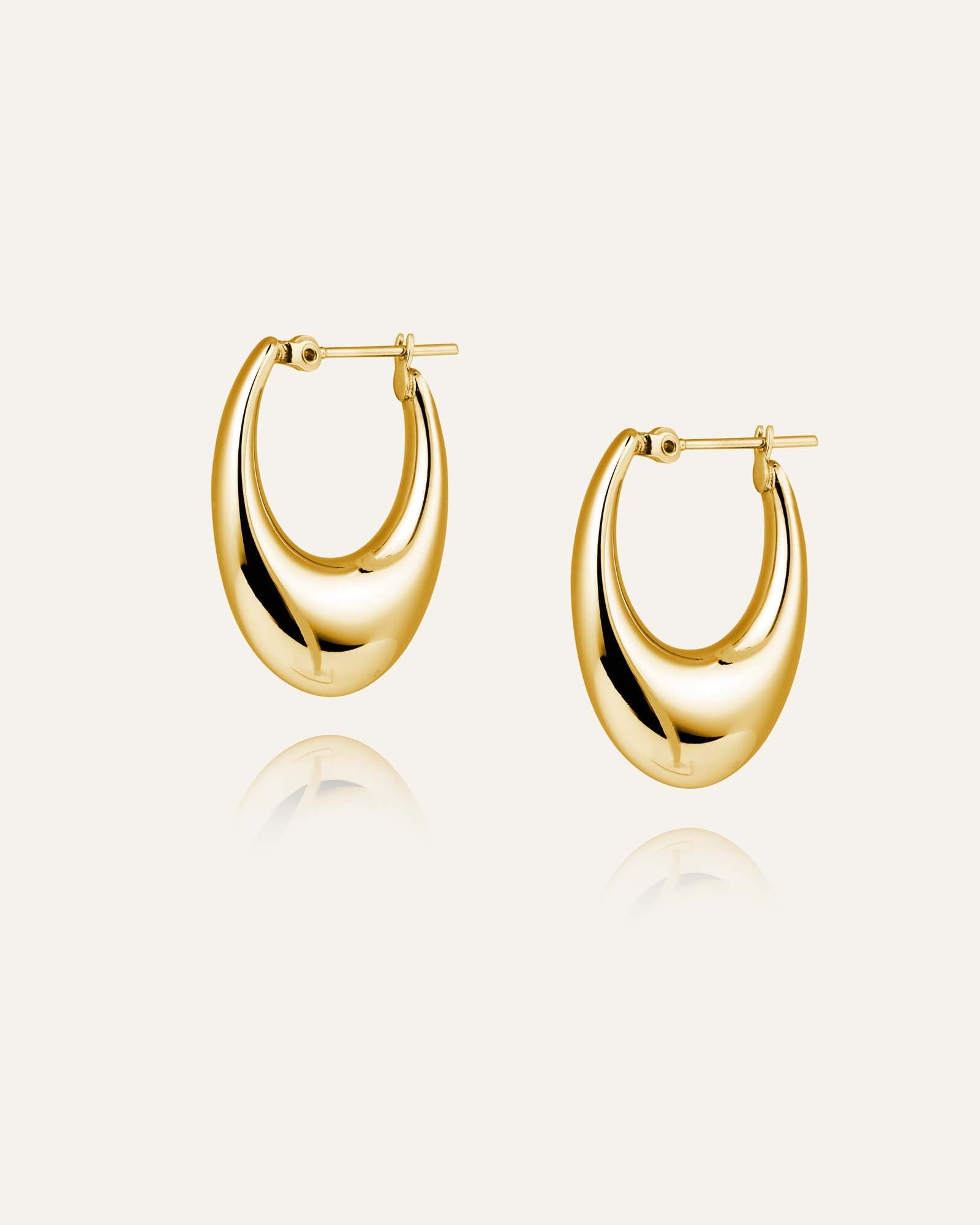 Warm 18K gold‑plating meets a clean rounded shape for a soft, confident glow. Lightweight, comfortable and water‑resistant.