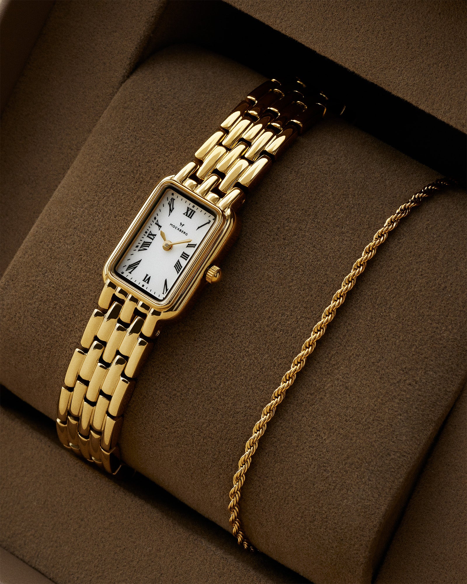 A beautiful box with our Renaissance watch and Thin Rope bracelet. The combination creates the perfect classic look that suits both everyday wear and special occasions. The watch and bracelet come in a box, making this the ultimate gift for someone you hold dear!