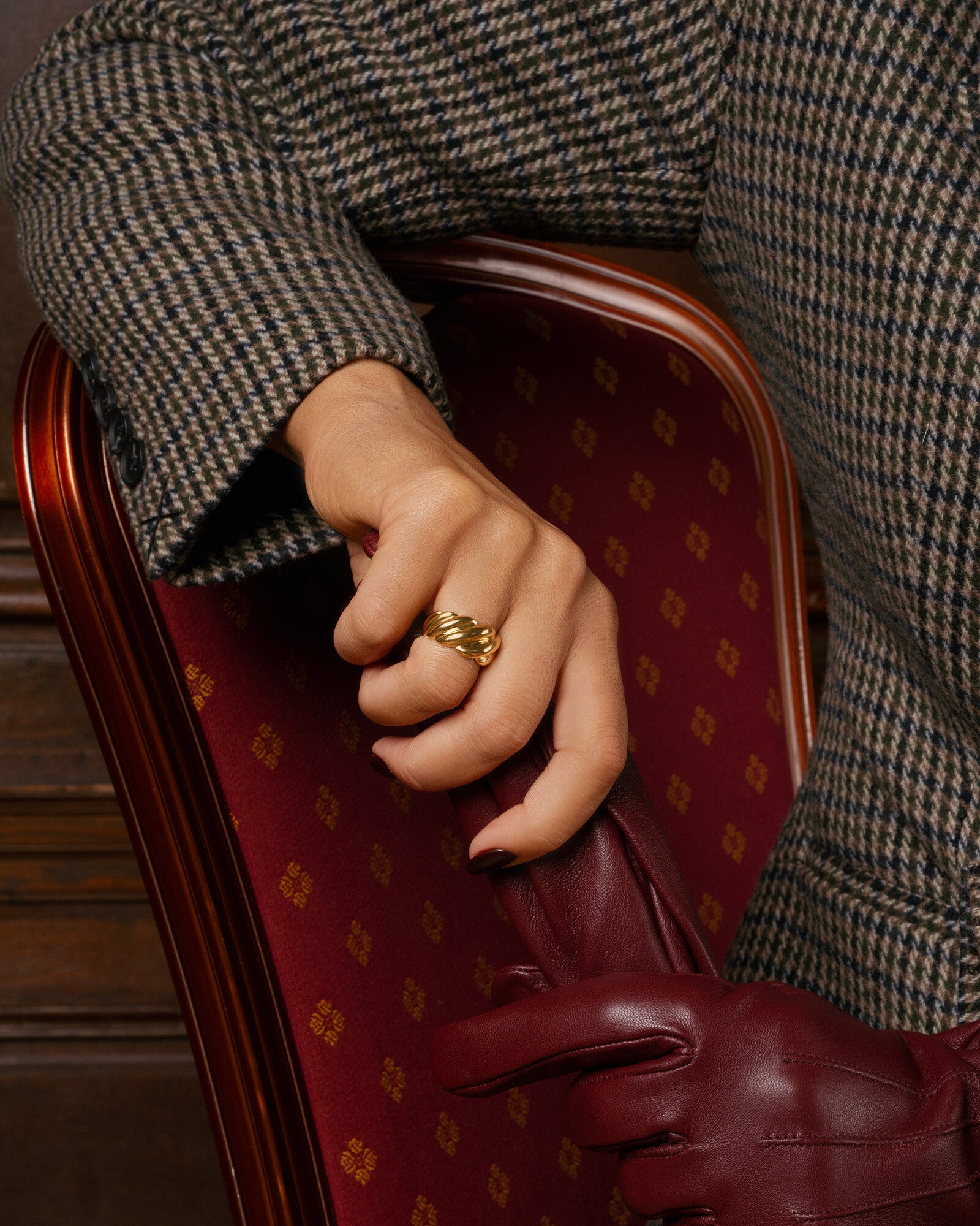 Warm shine in a softly sculpted silhouette. Seléne in gold color brings presence without overpowering – a confident choice from jeans to evening wear.