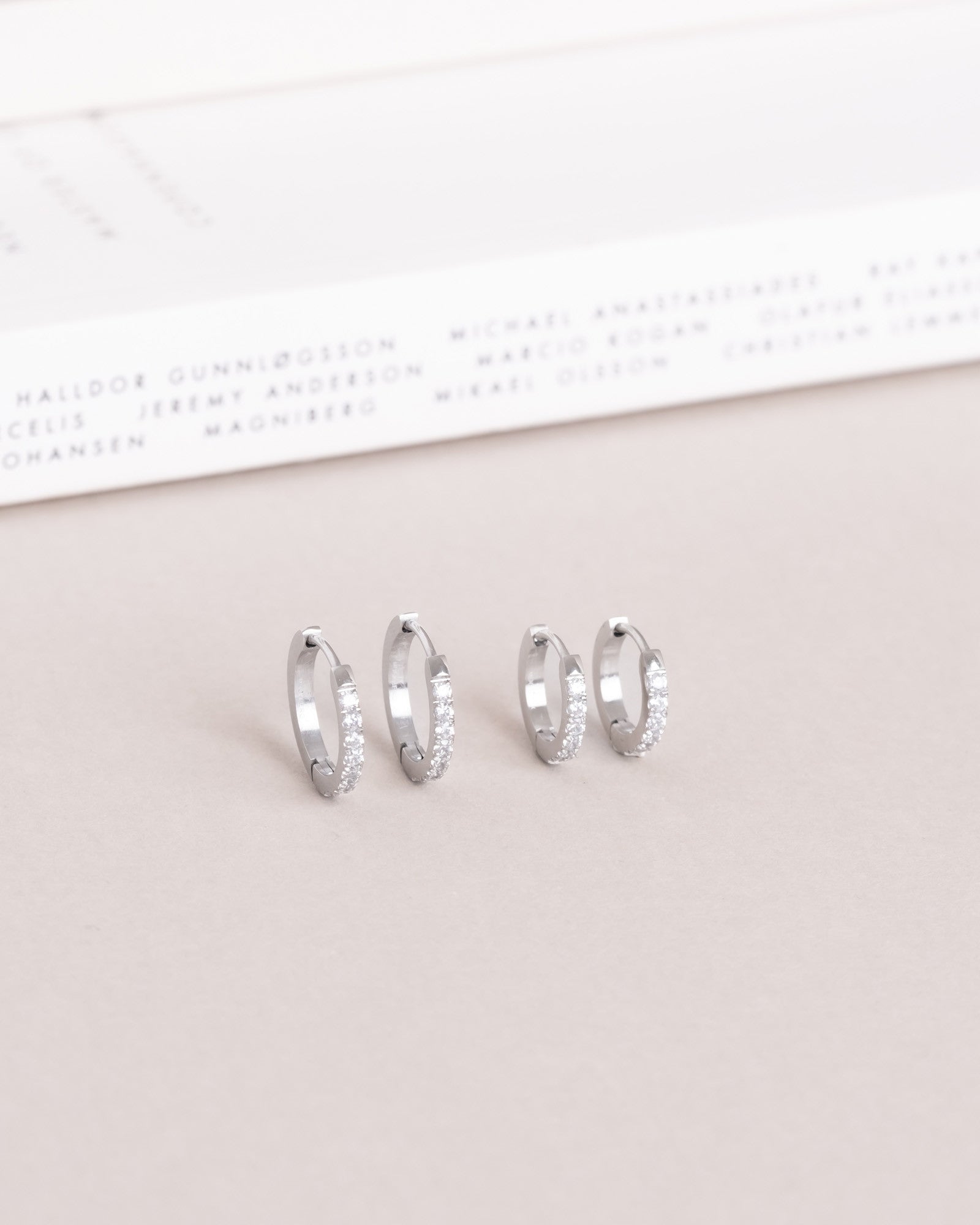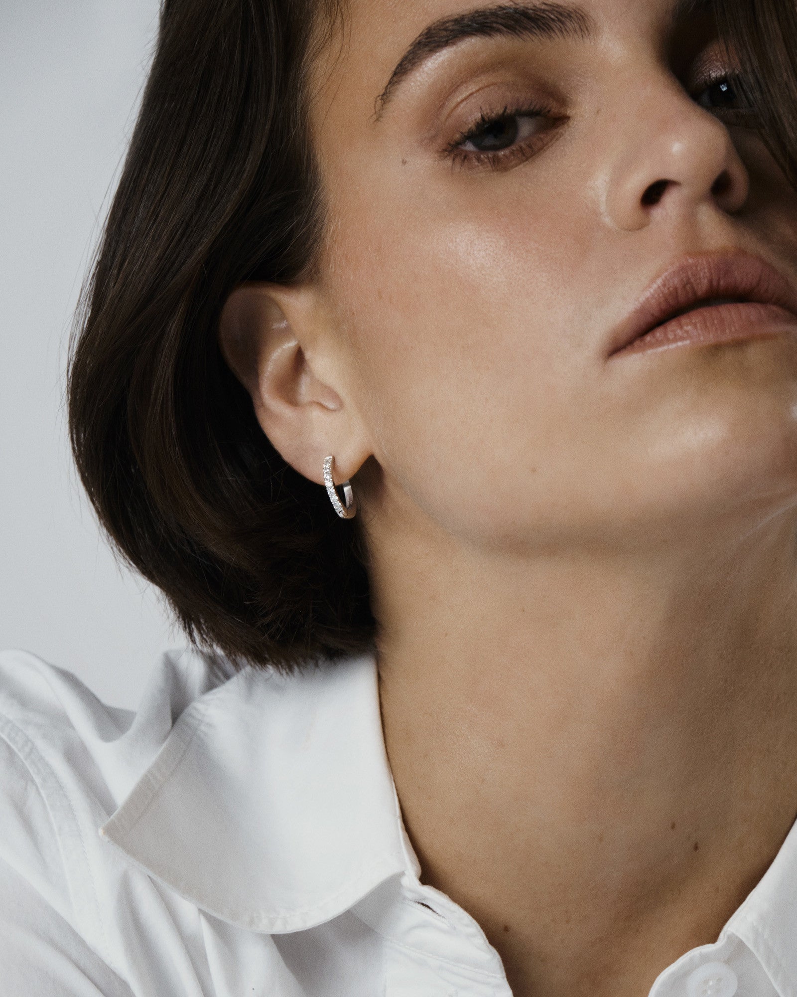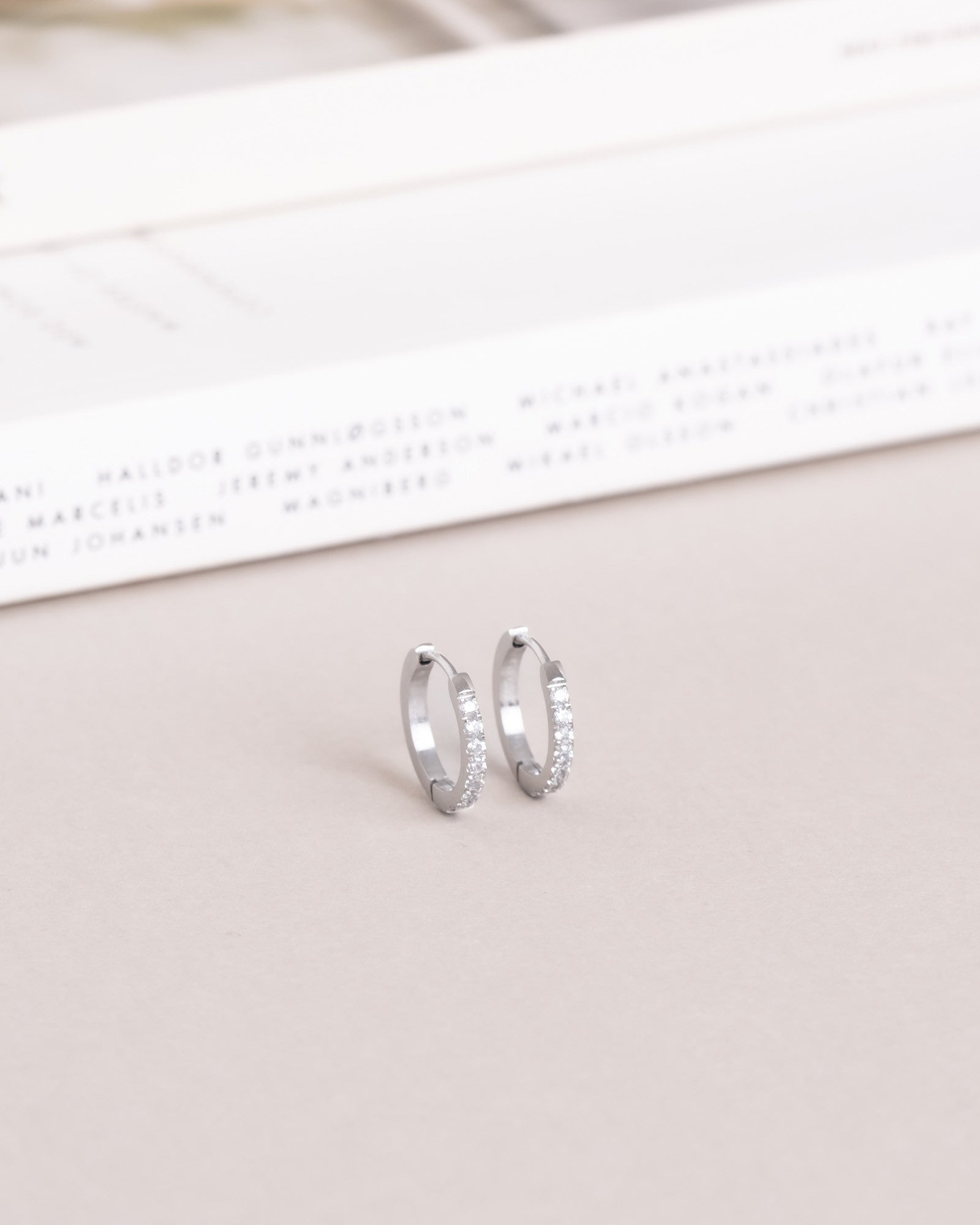 Timeless hoops with cubic zirconia stones, crafted from solid stainless steel. Durable and water-resistant, they retain their color and elegance over time. Perfect to pair with our Classic Hoops.