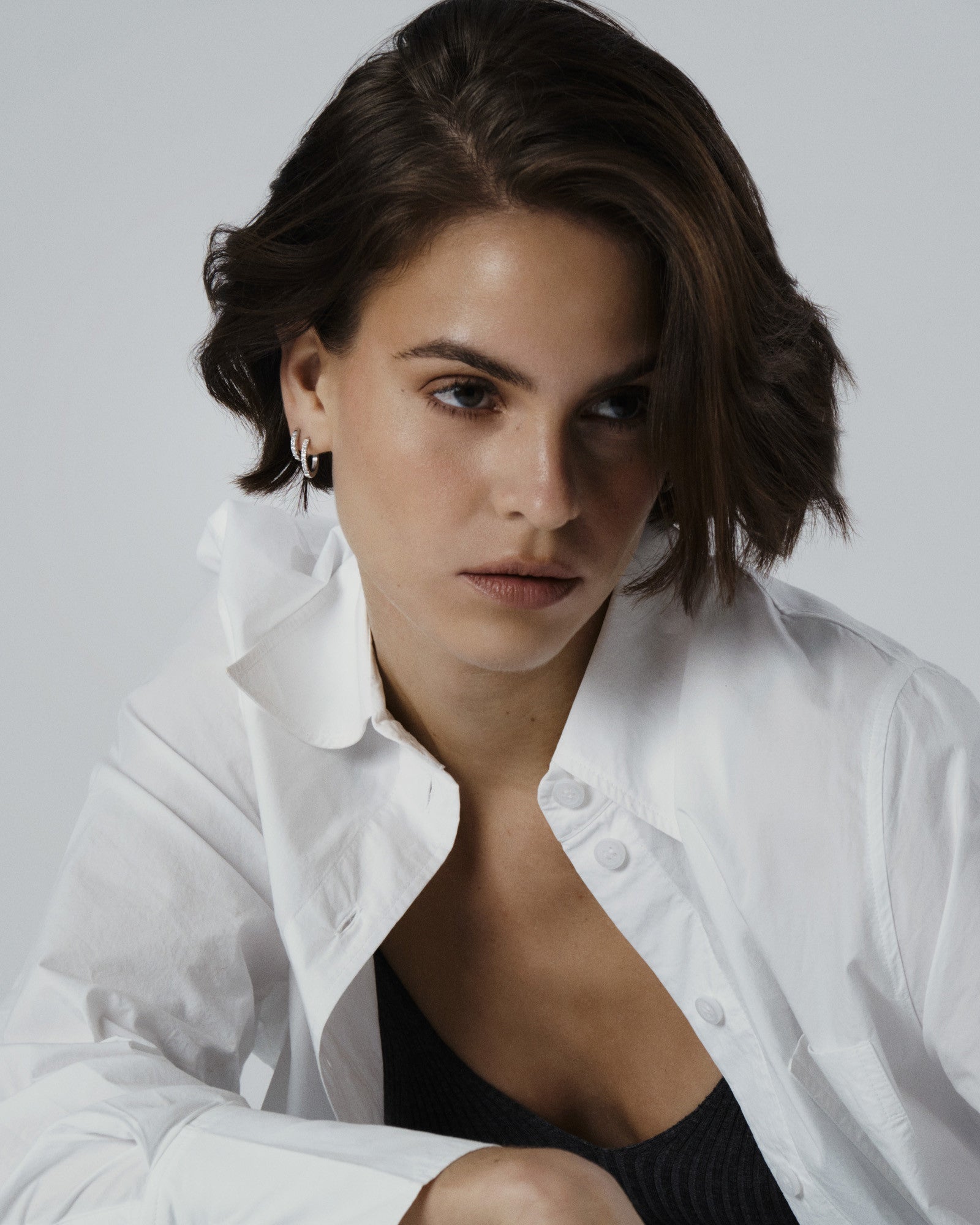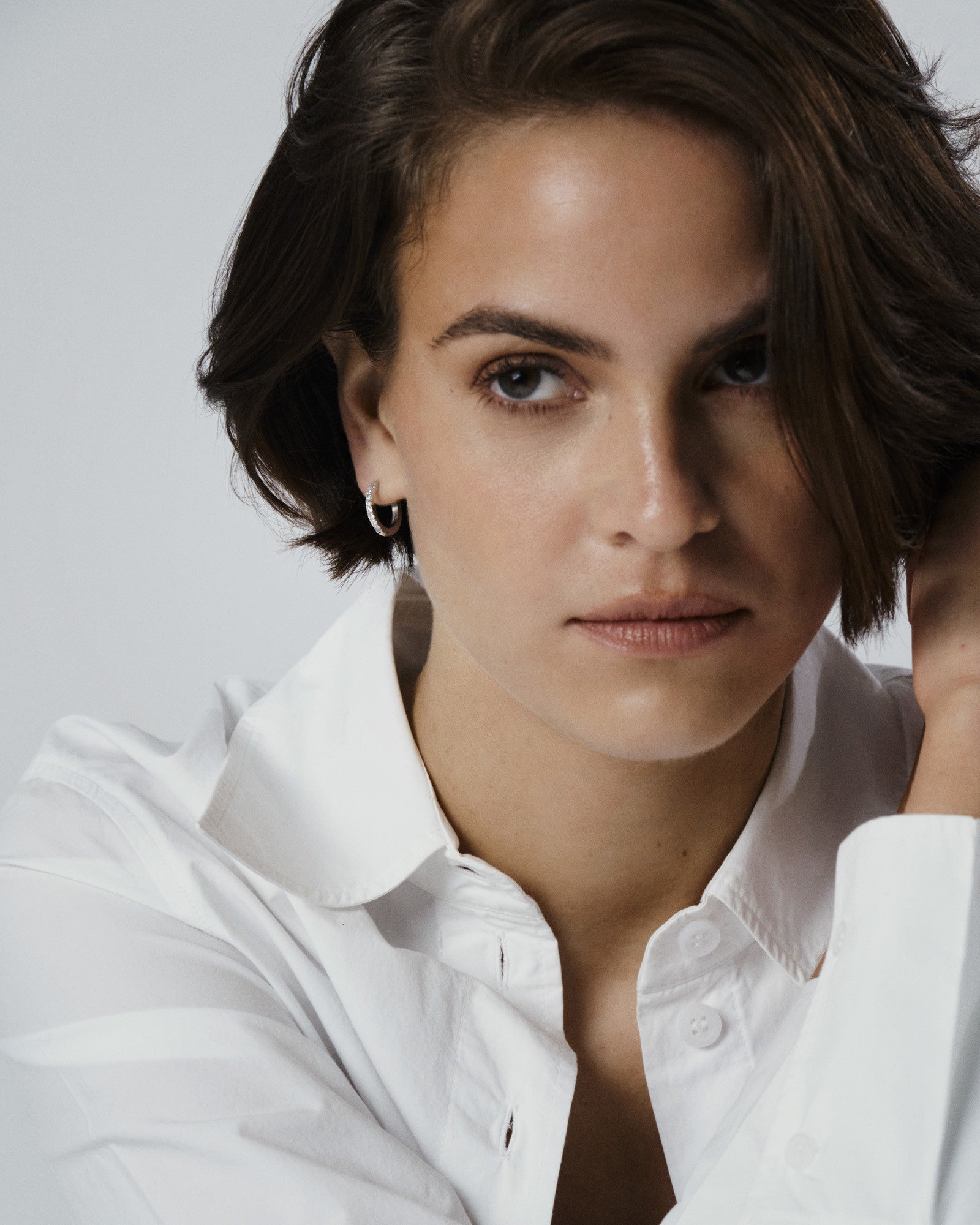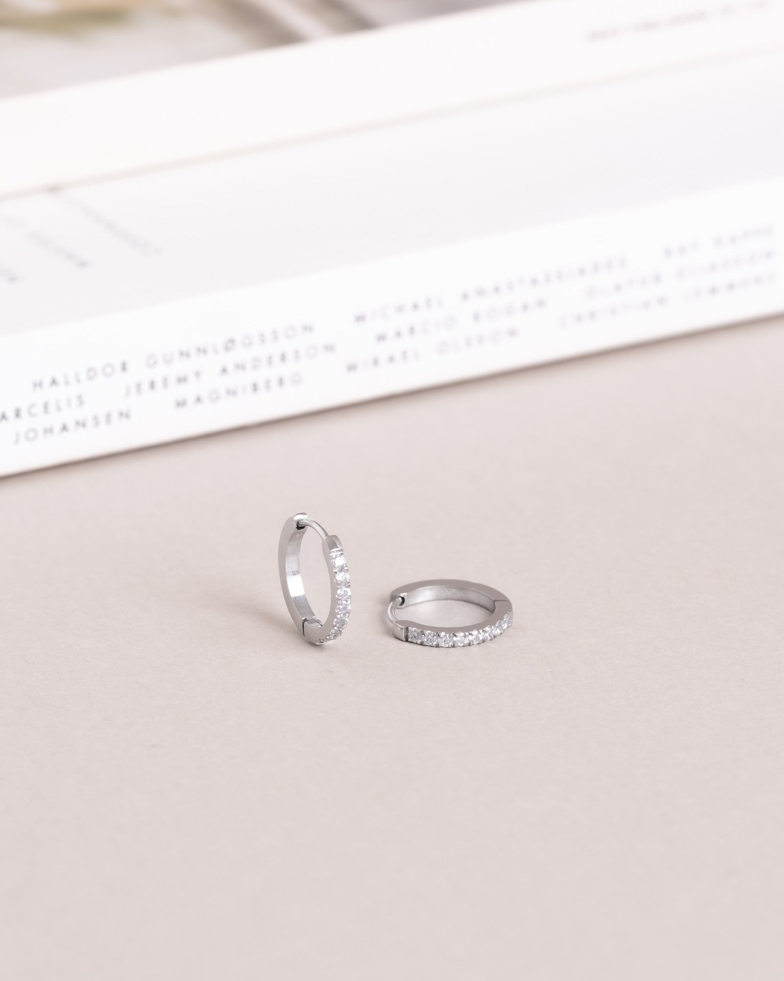 Timeless hoops with cubic zirconia stones, crafted from solid stainless steel. Durable and water-resistant, they retain their color and elegance over time. Perfect to pair with our Classic Hoops.