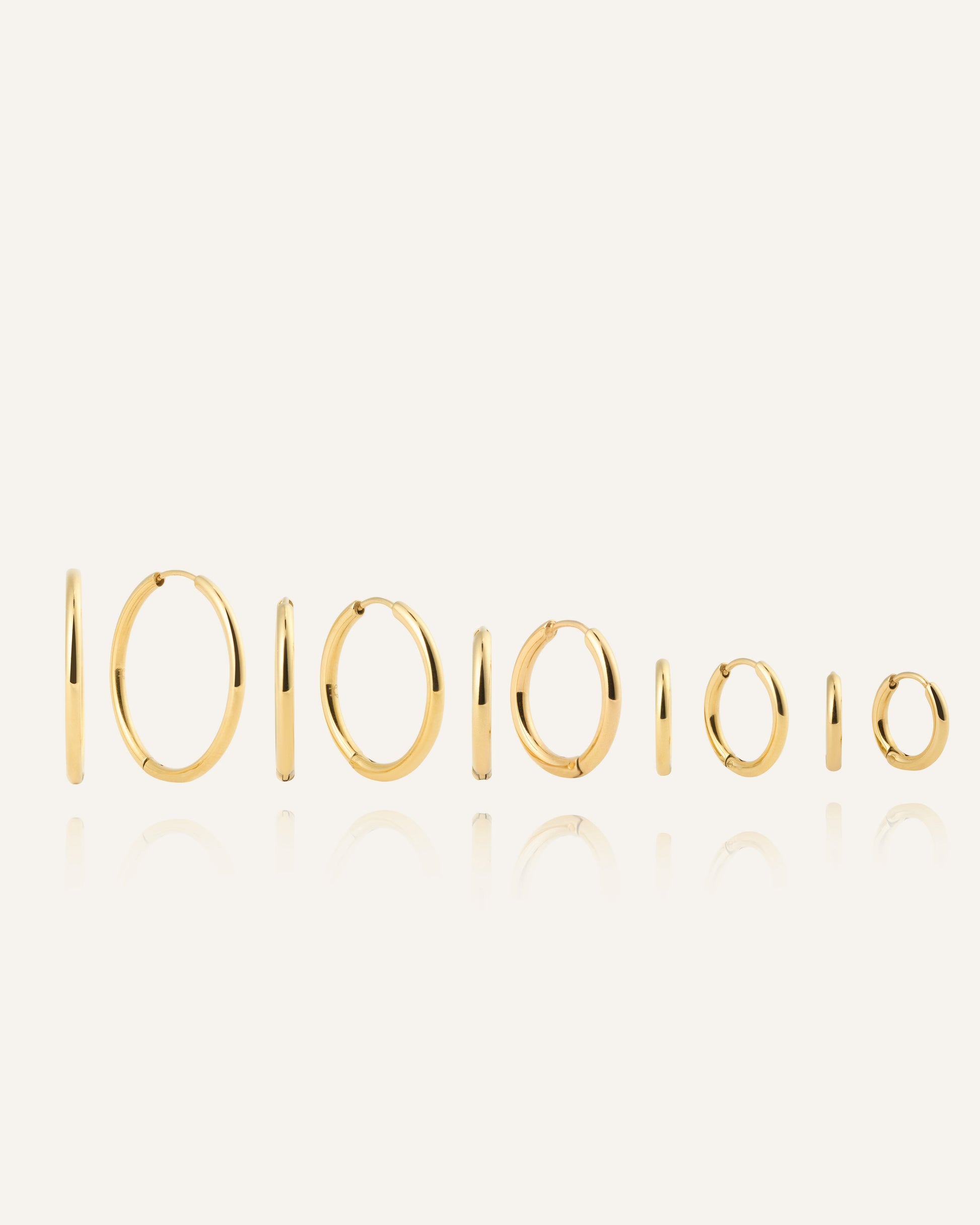 Slim Gold Hoops feature a thin, softly rounded shape that shimmers with a warm gold tone. The timeless design offers a clean look and is easy to wear and style from day to night. Wear them solo for a pared-back style or pair with other earrings for a personal touch.