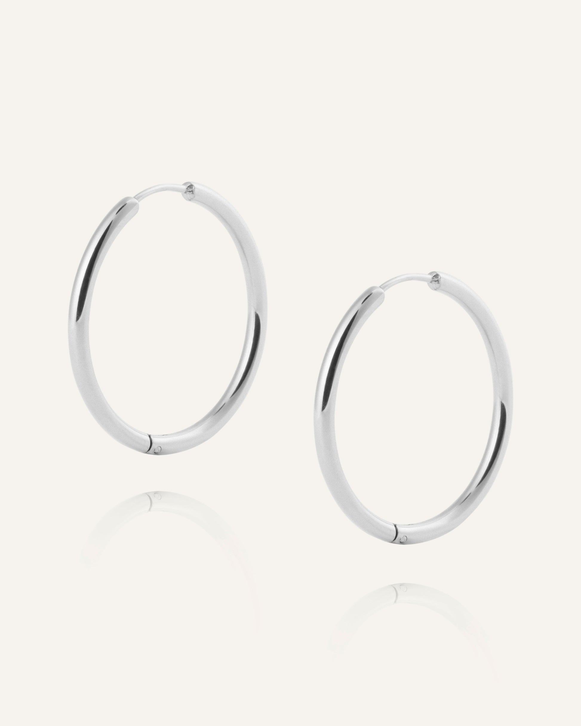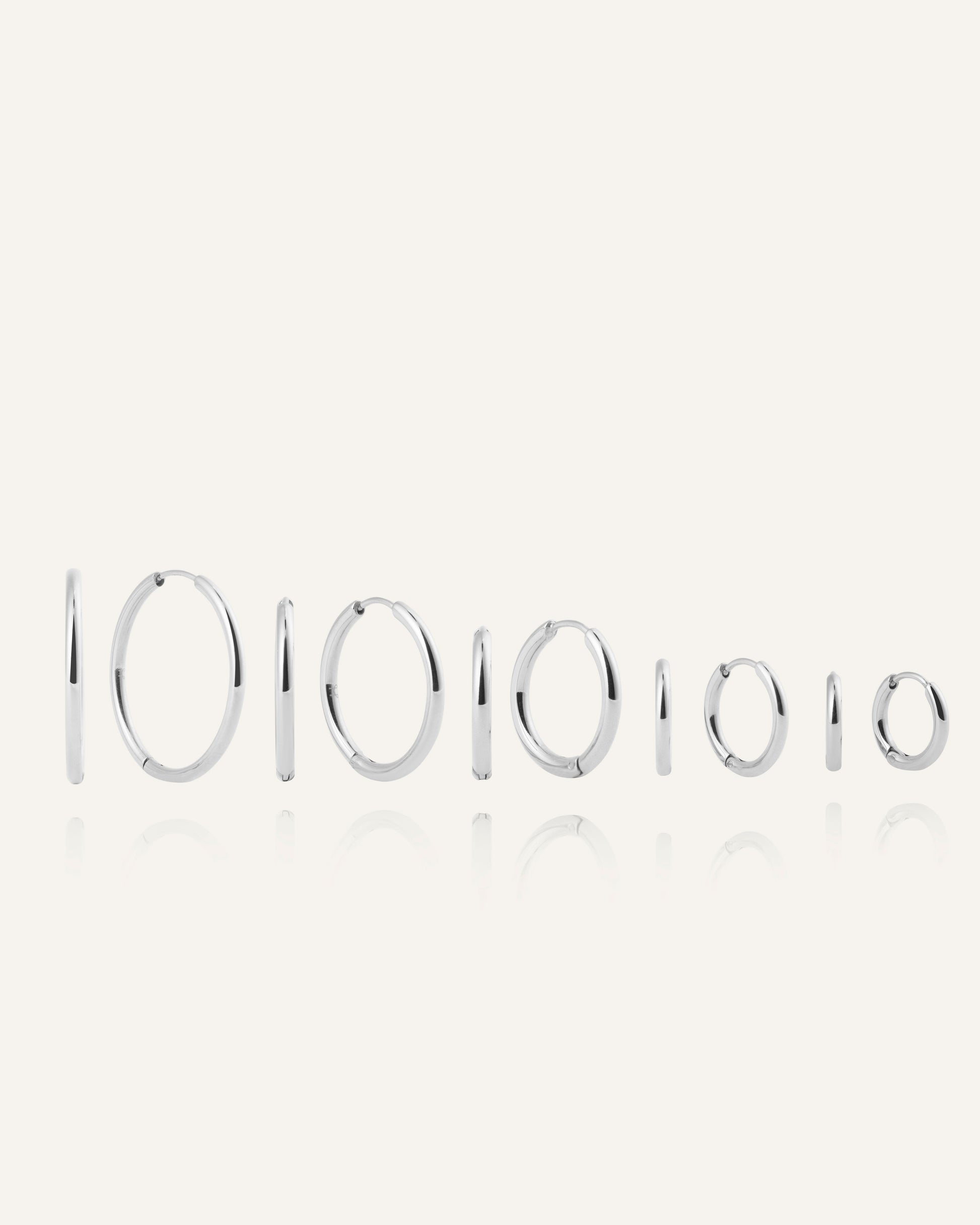 Slim Steel Hoops feature a slender, elegant profile that catches the light in a crisp silver tone. The pared-back design delivers a clean, refined finish that works just as well solo as layered with other earrings.