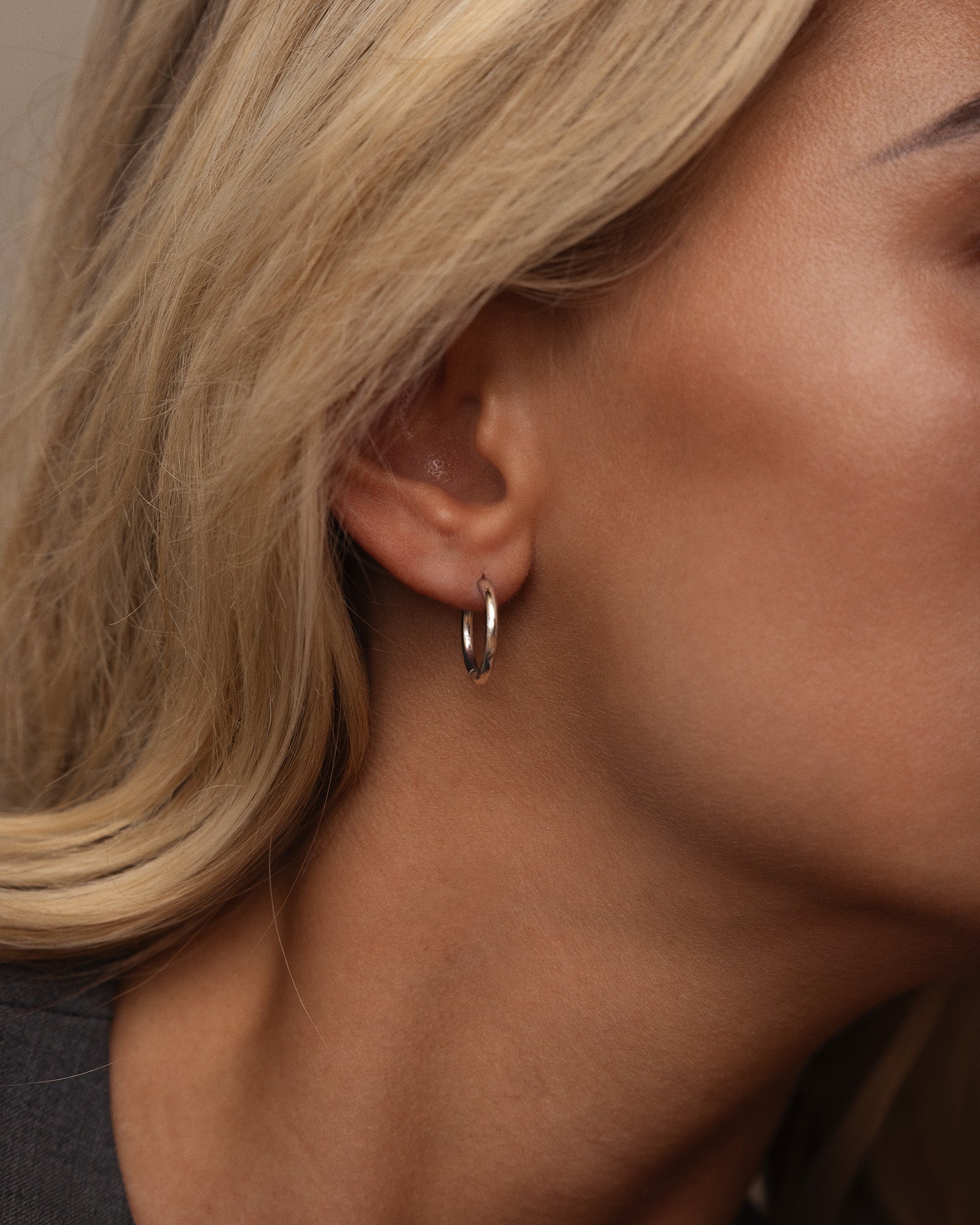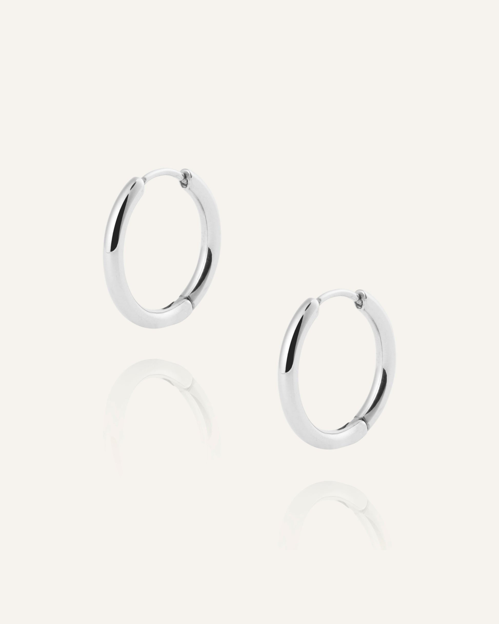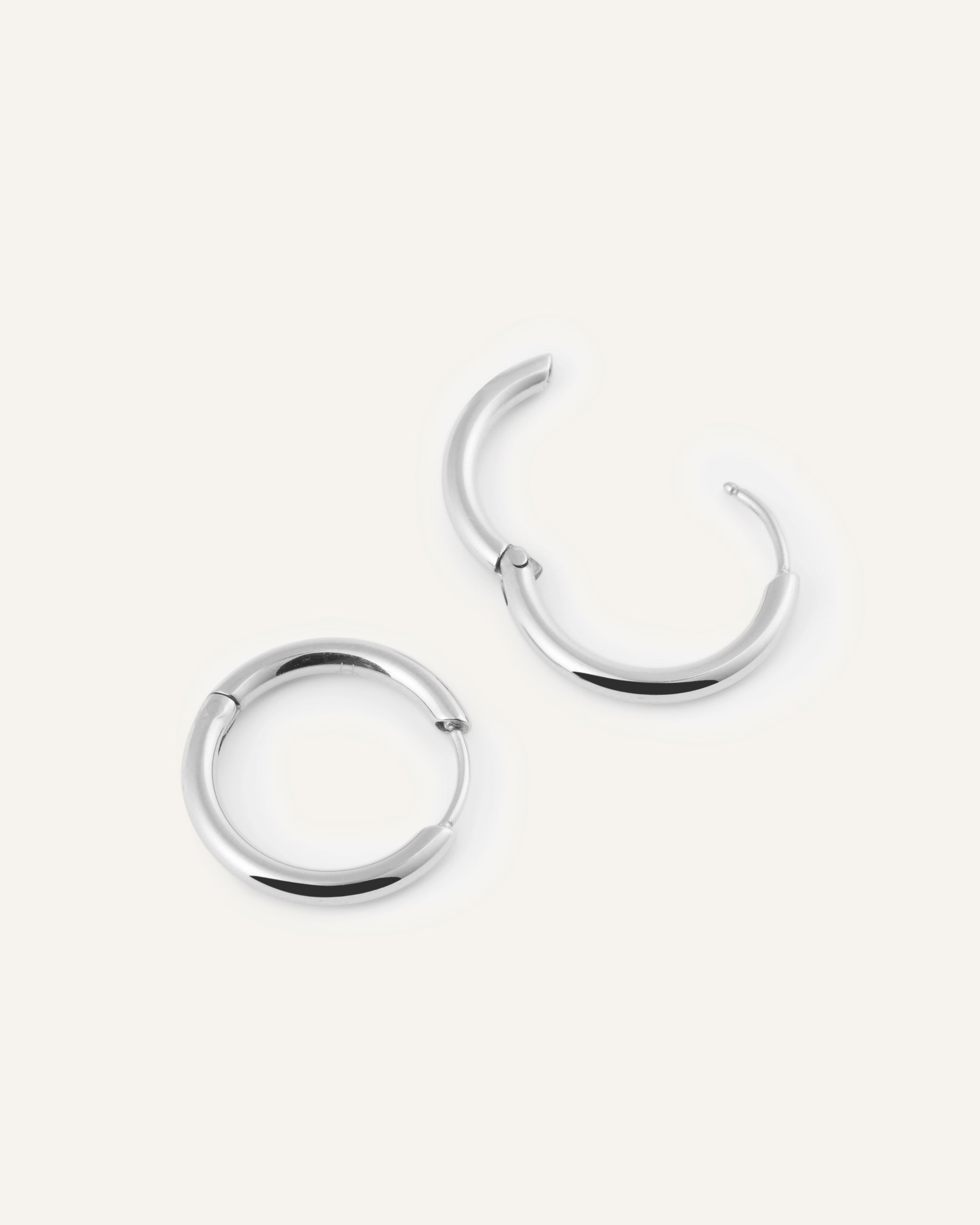 Slim Steel Hoops feature a slender, elegant profile that catches the light in a crisp silver tone. The pared-back design delivers a clean, refined finish that works just as well solo as layered with other earrings.