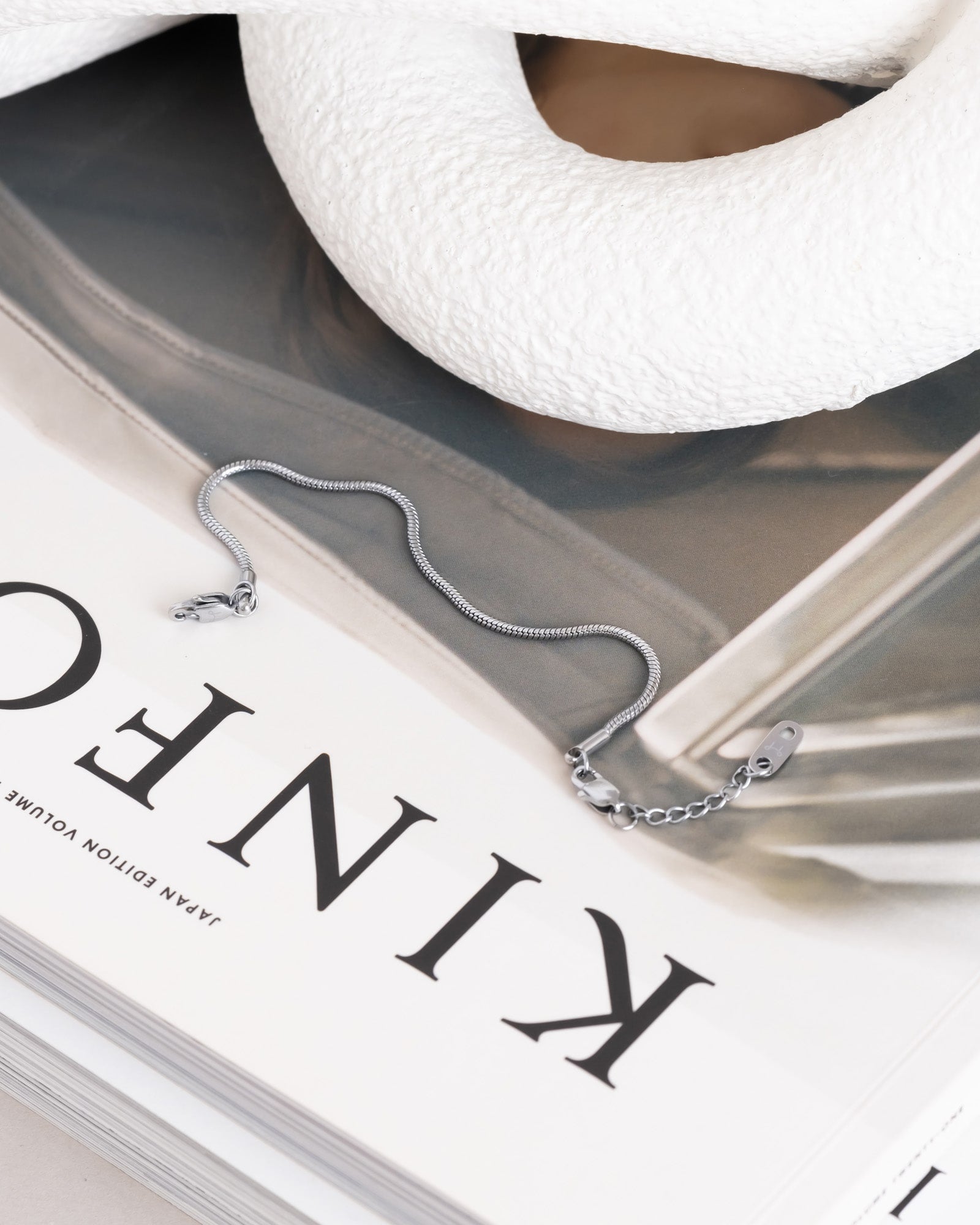 A classic bracelet with a softly flowing design. Made from stainless steel with PVD plating, it is both durable and water-resistant, ensuring it retains its color and shine over time. The extension chain can easily be removed for a customized fit.