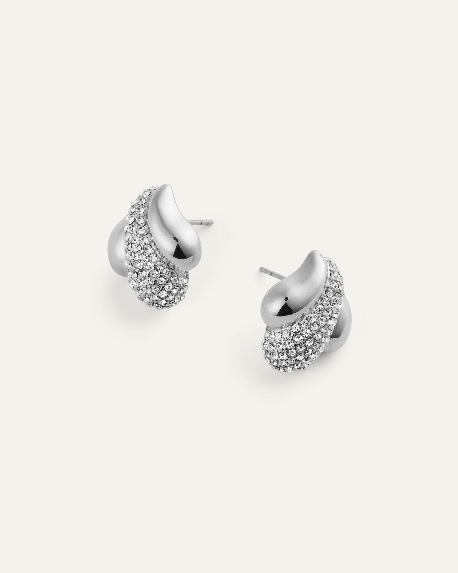 Sculpted form with soft curves and tightly set white Preciosa stones that catch the light beautifully. The silver color offers a clear, refined look that works effortlessly from day to night.