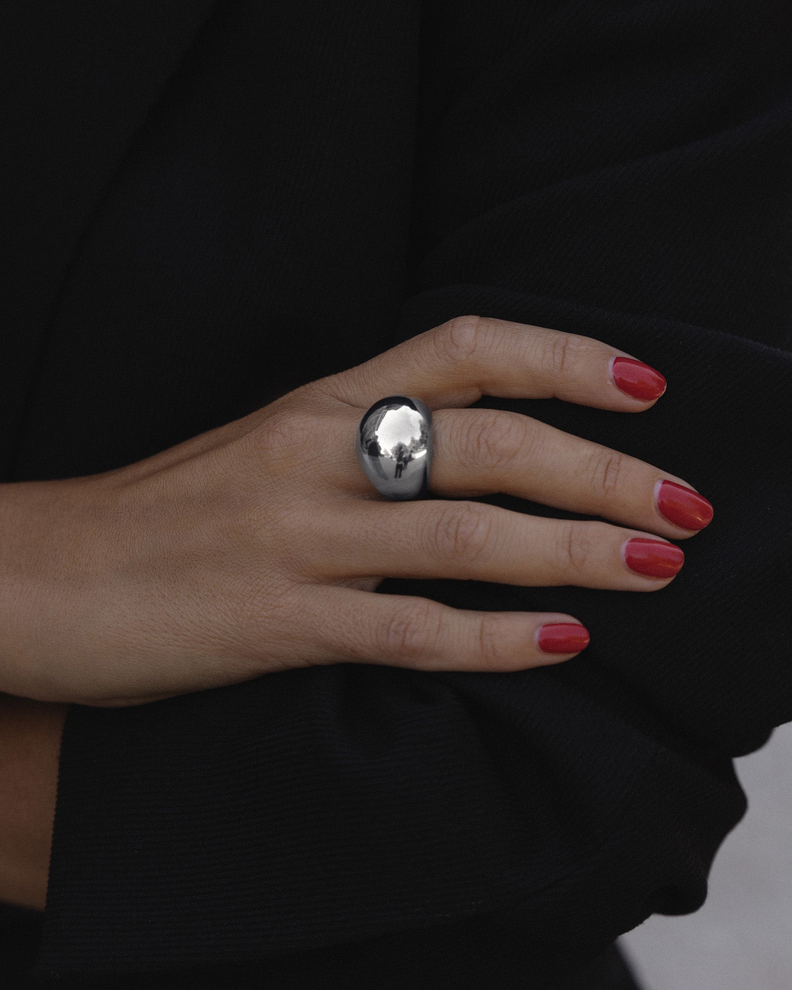 Sonja Ring is a wide, smooth statement ring with a rounded form and shiny surface.