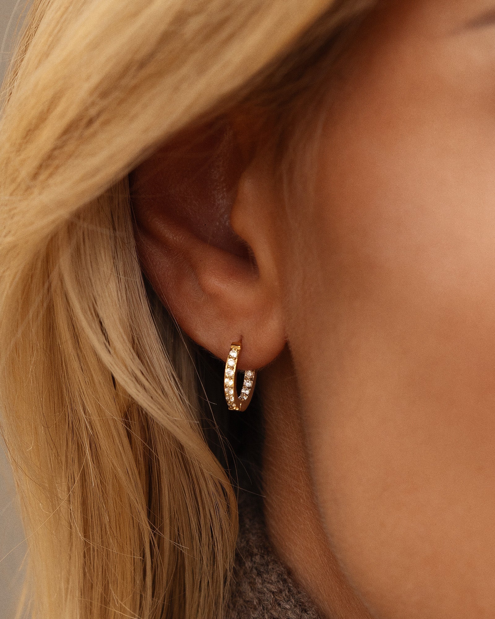 Sparkle Hoops shimmer softly in a gold tone. The slim hoops are adorned with white cubic zirconia that catch the light with every movement. Easy to wear, easy to style—from day to night.
