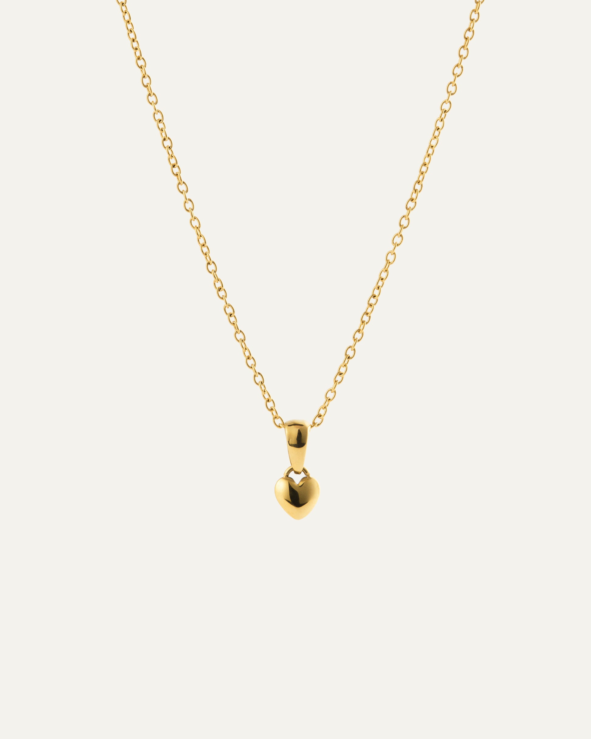 A delicate gold-plated necklace featuring a small heart pendant. Its clean, modern design makes it a timeless symbol of love, perfect for everyday elegance.