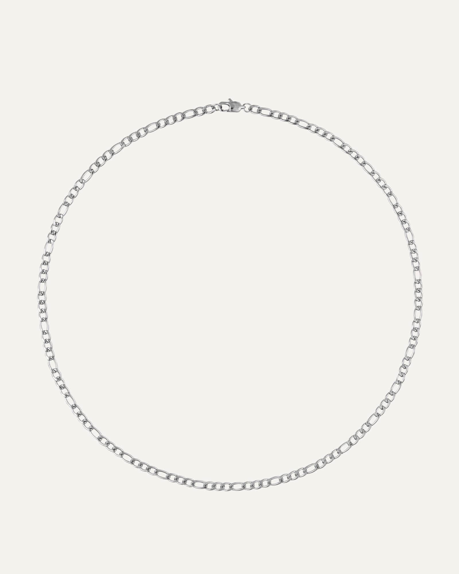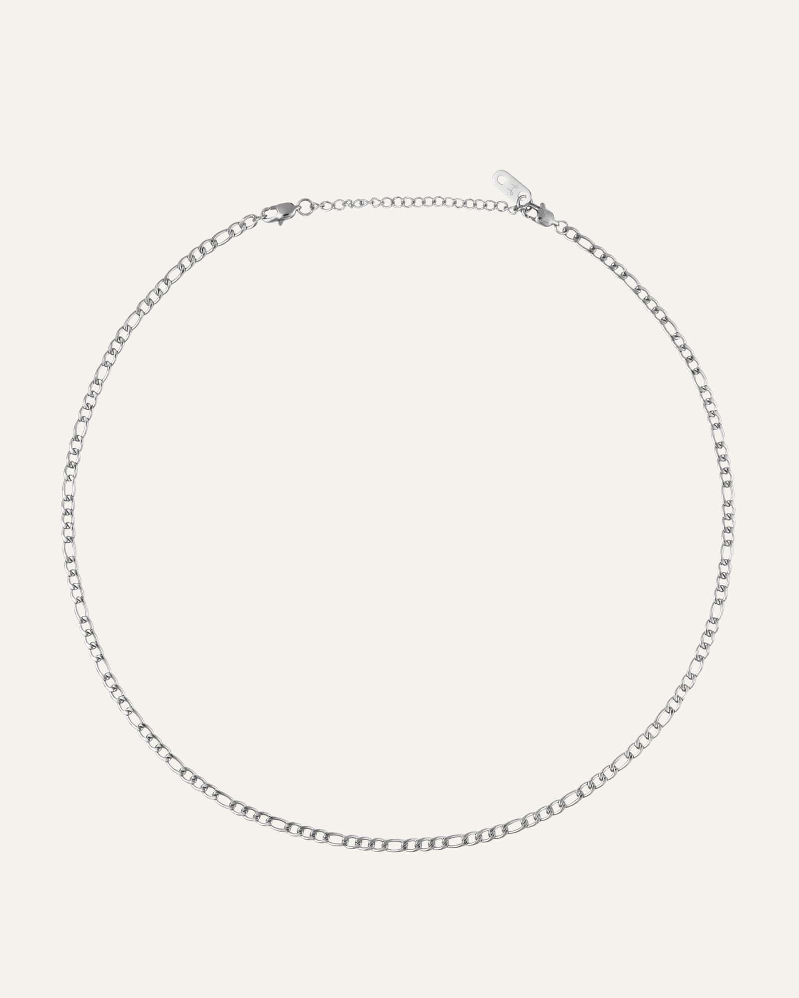 Figaro Necklace is a necklace with a classic link design. Pair with the Figaro Bracelet for a sleek, coordinated look. Made from stainless steel with PVD plating, it is both durable and water-resistant, ensuring it retains its color and shine over time. The extension chain can easily be removed for a customized fit.